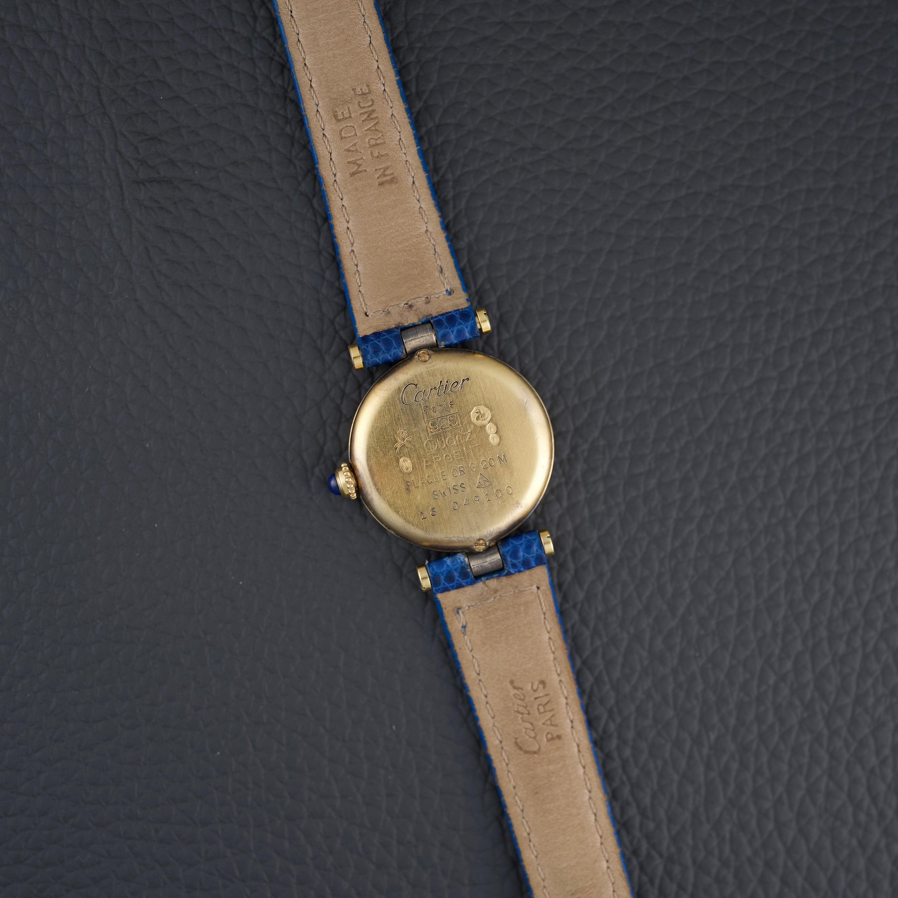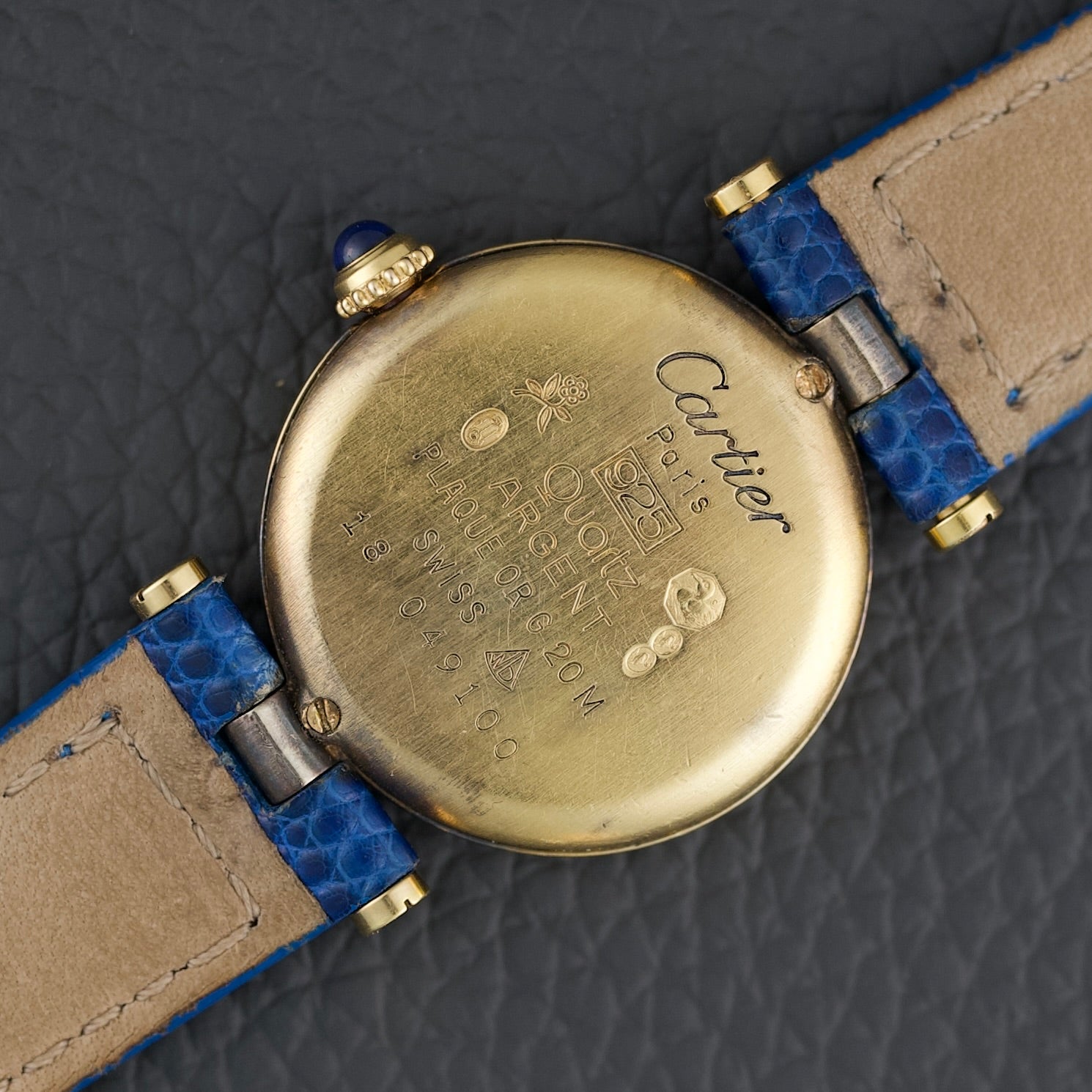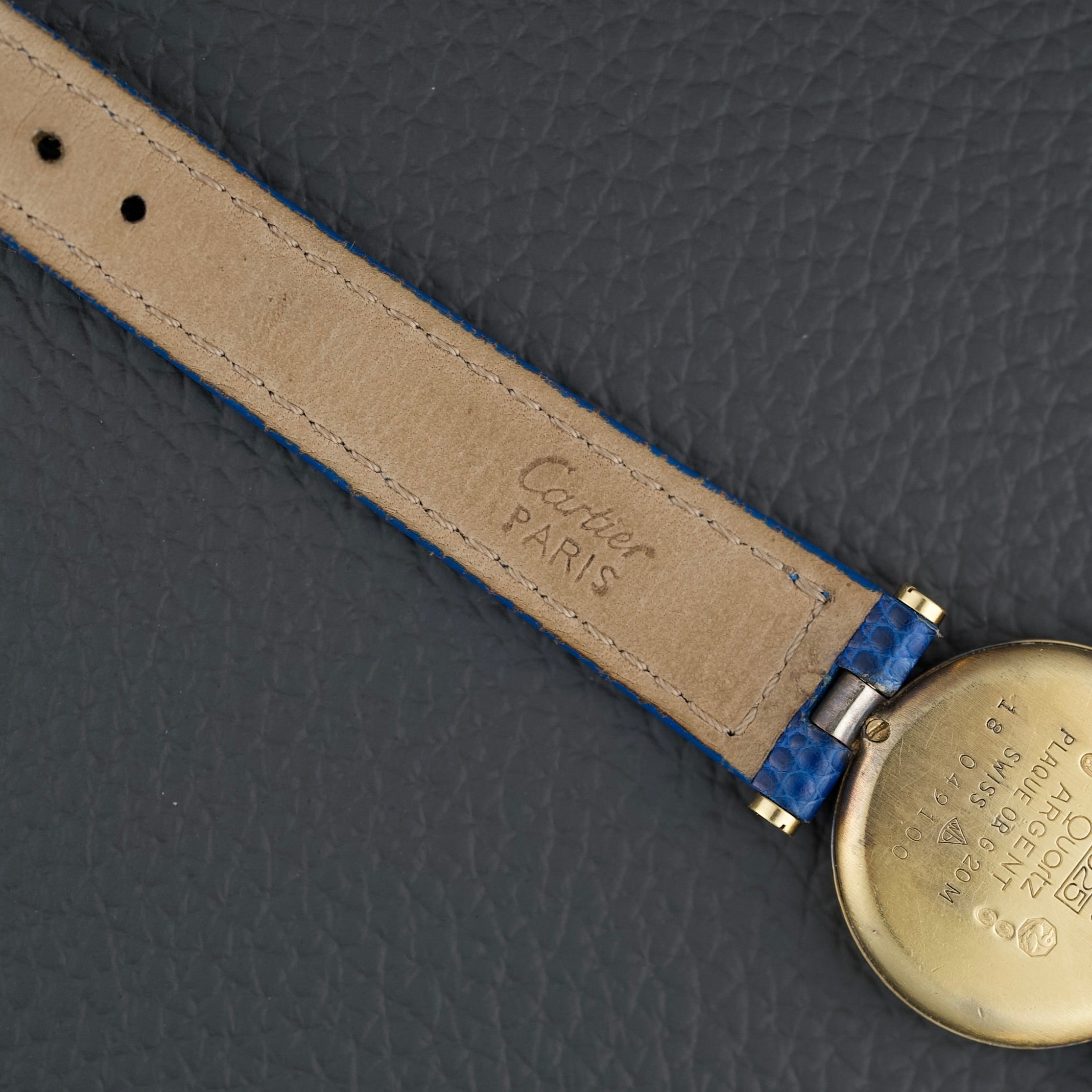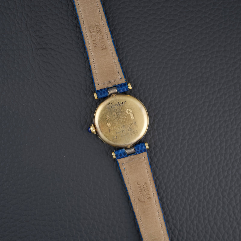 Das mit 20 Mikron Gelbgold plattierte 925er Silbergehäuse unterstreicht die charakteristische Ästhetik von Cartier. Dieses Modell verfügt über ein zuverlässiges Quarzwerk, das Präzision und einfache Wartung gewährleistet.