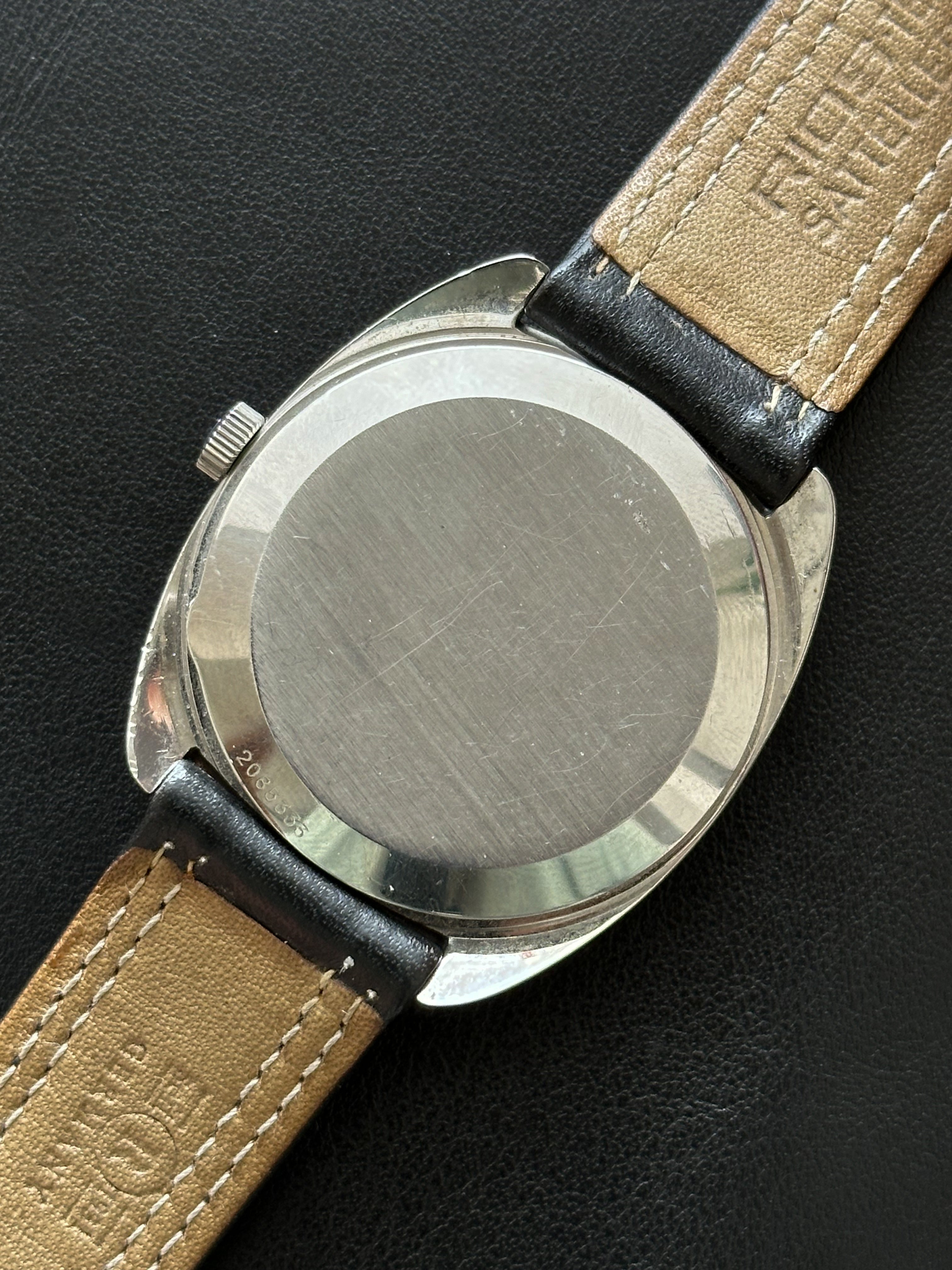 Diese elektronische Uhr, die dem Design des Yachtclubs nahe kommt, wurde nur zwischen 1971 und 1973 hergestellt. Sie ist ein noch selteneres Stück, da sie über ein Tagesfenster in französischer Sprache verfügt.