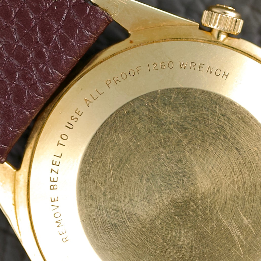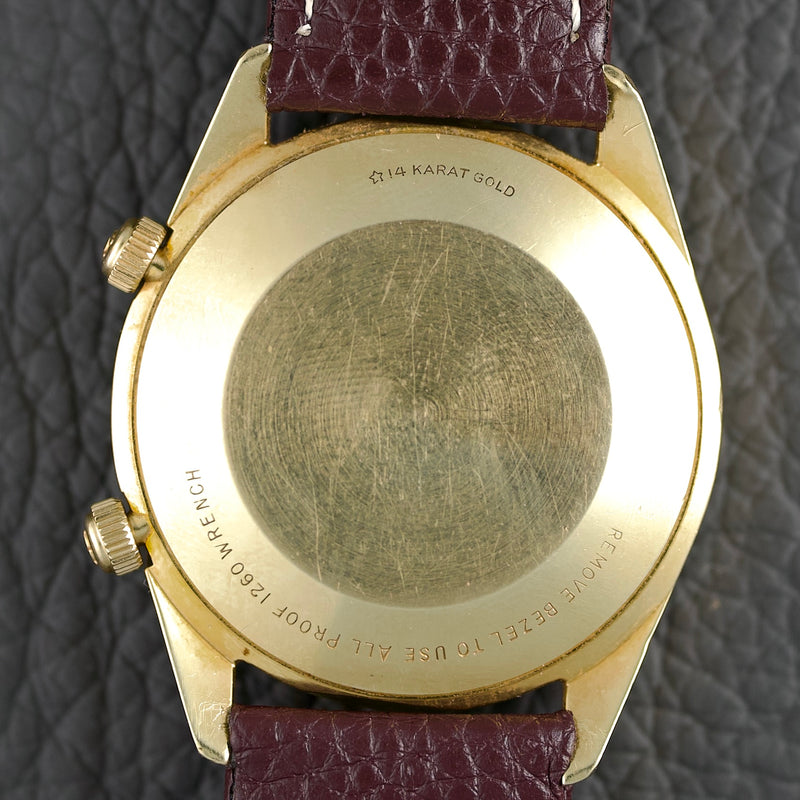 Die Uhr ist in einem hervorragenden Zustand. Dieses Modell ist Teil einer sehr seltenen Serie mit geriffelter Lünette. Diese besondere Lünette verleiht ihr einen einzigartigen Stil und ein einzigartiges Lichtspiel.