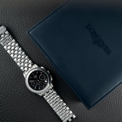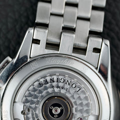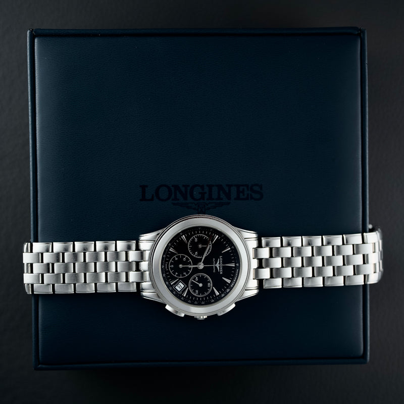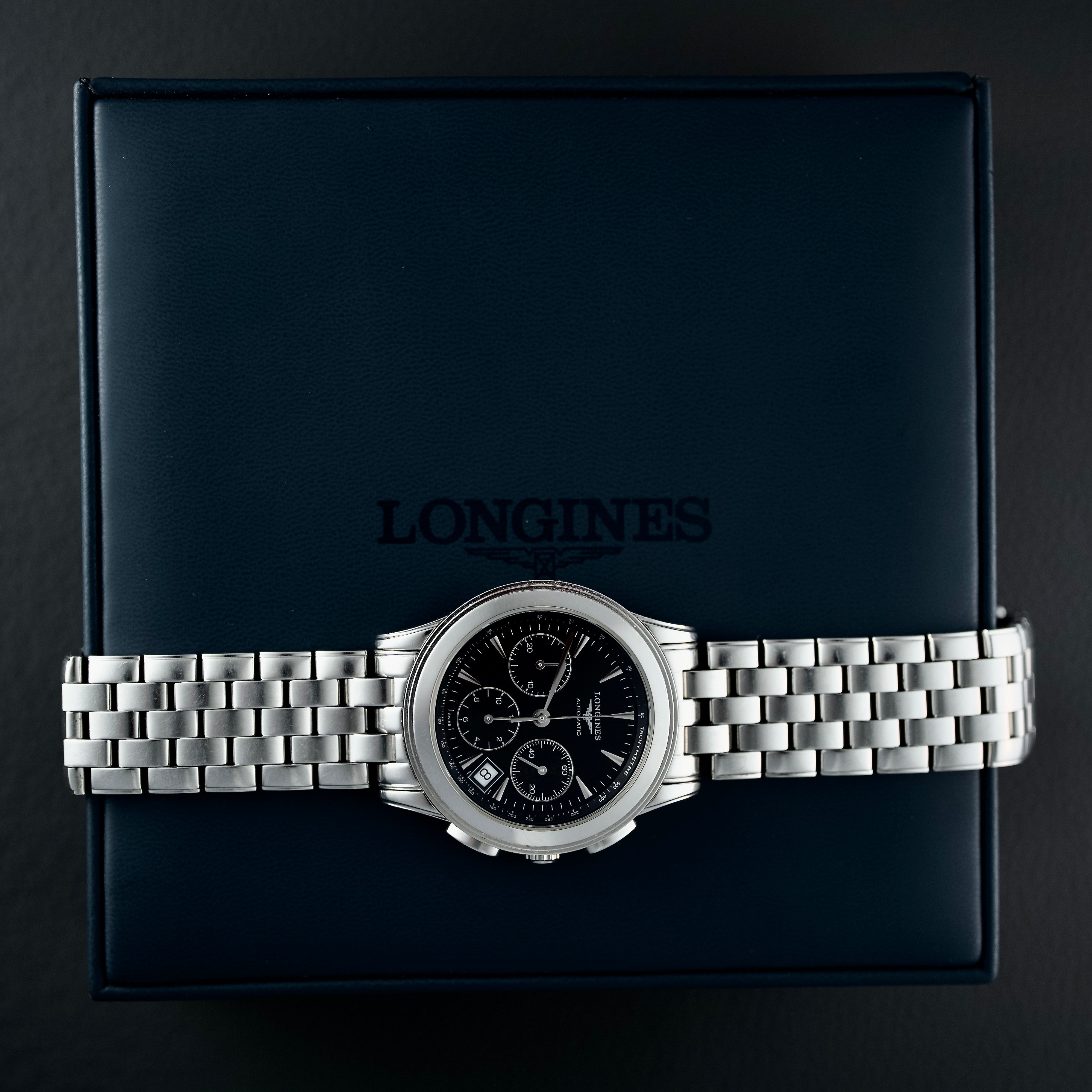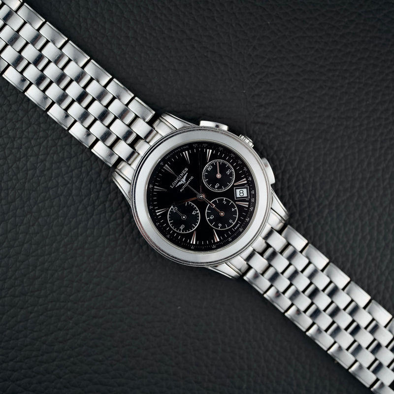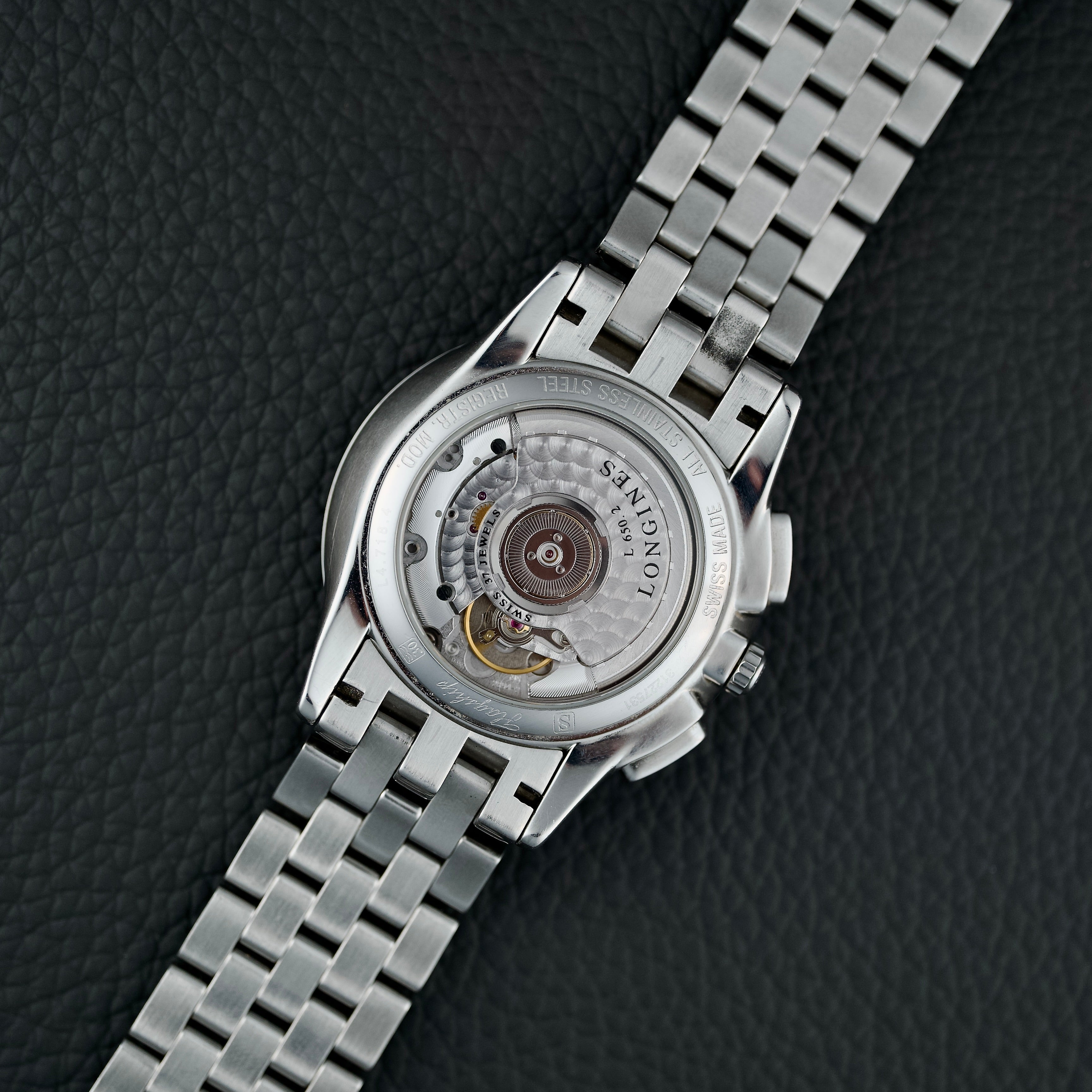 Die in den 1950er Jahren lancierte Flagship-Kollektion ist ein perfektes Beispiel dafür und vereint schlichte Eleganz, Raffinesse und hauseigene Expertise. Die Referenz L4.718.4, die Anfang der 2000er Jahre produziert wurde, überträgt dieses Erbe mit einem modernen Touch in einen automatischen Chronographen mit einem kompakten Durchmesser von 39 mm.