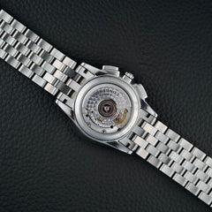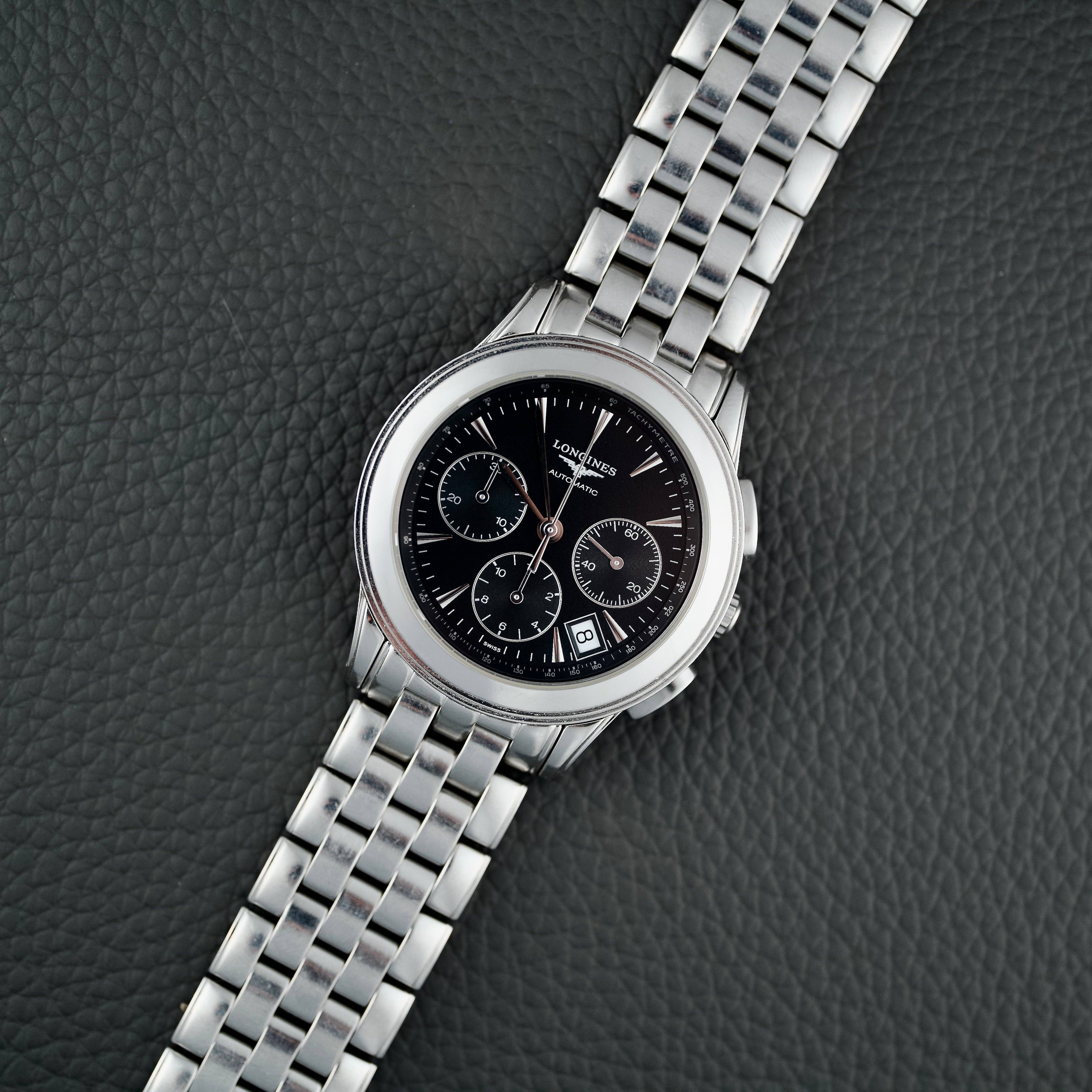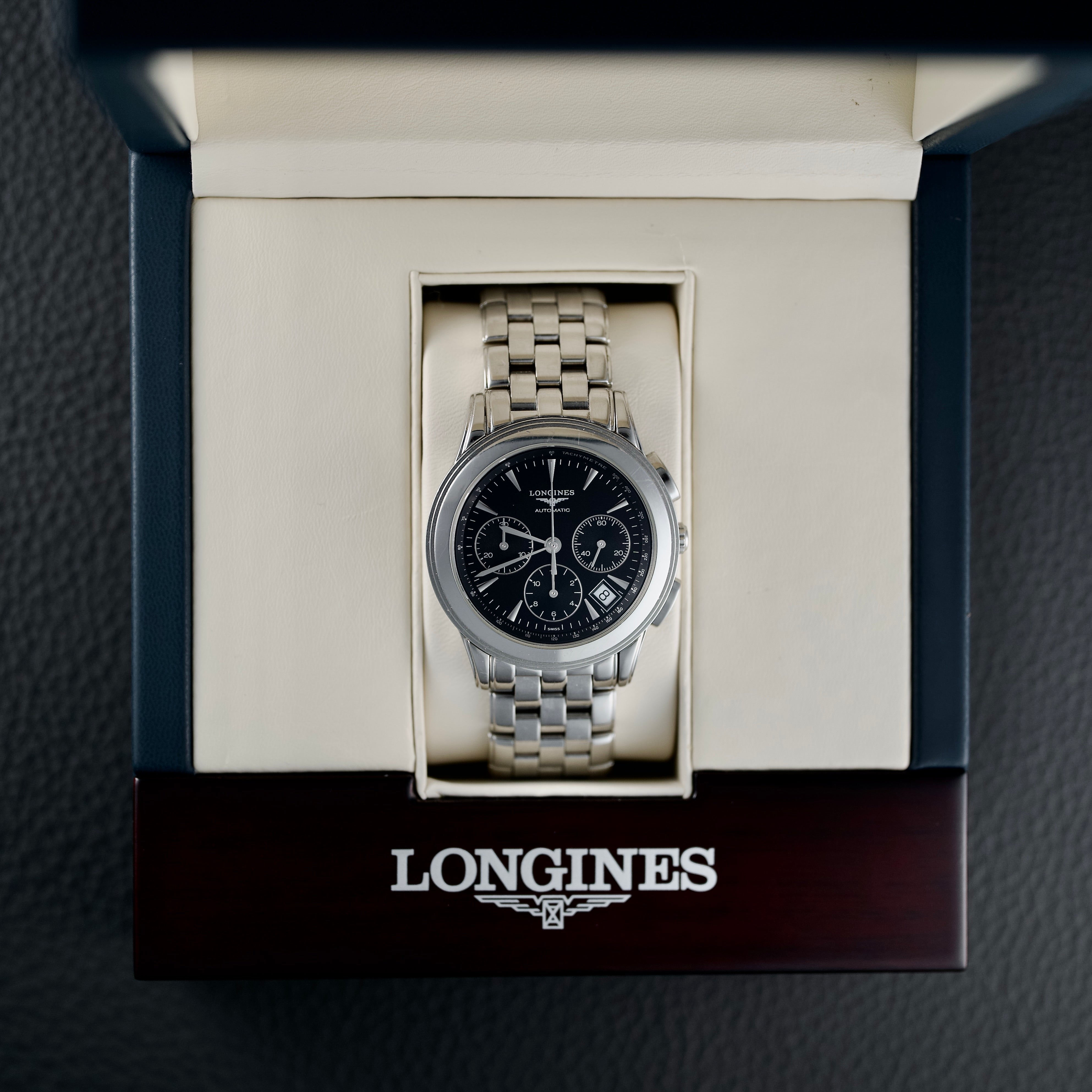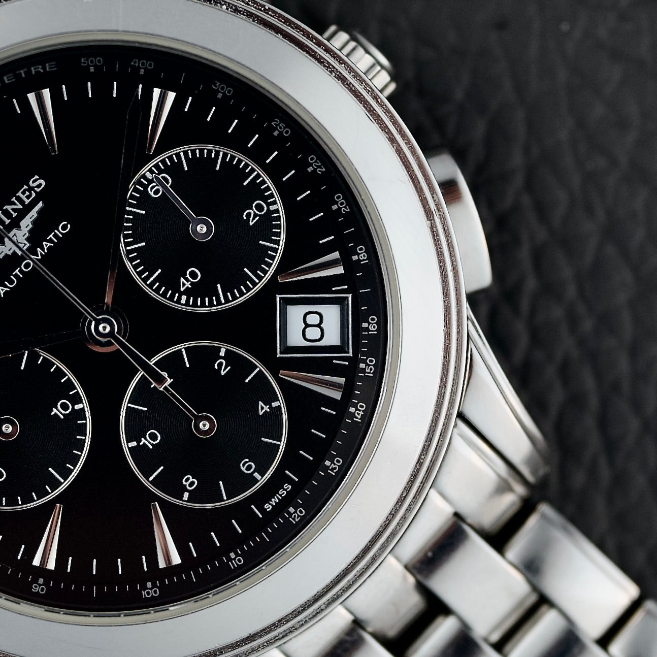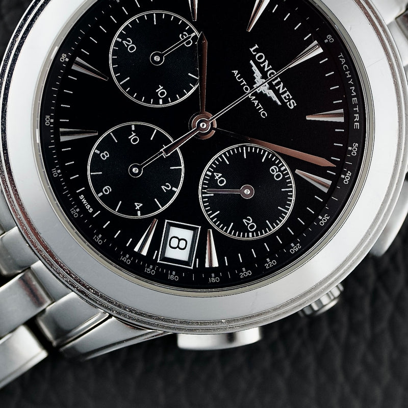 Die in den 1950er Jahren lancierte Flagship-Kollektion ist ein perfektes Beispiel dafür und vereint schlichte Eleganz, Raffinesse und hauseigene Expertise. Die Referenz L4.718.4, die Anfang der 2000er Jahre produziert wurde, überträgt dieses Erbe mit einem modernen Touch in einen automatischen Chronographen mit einem kompakten Durchmesser von 39 mm.