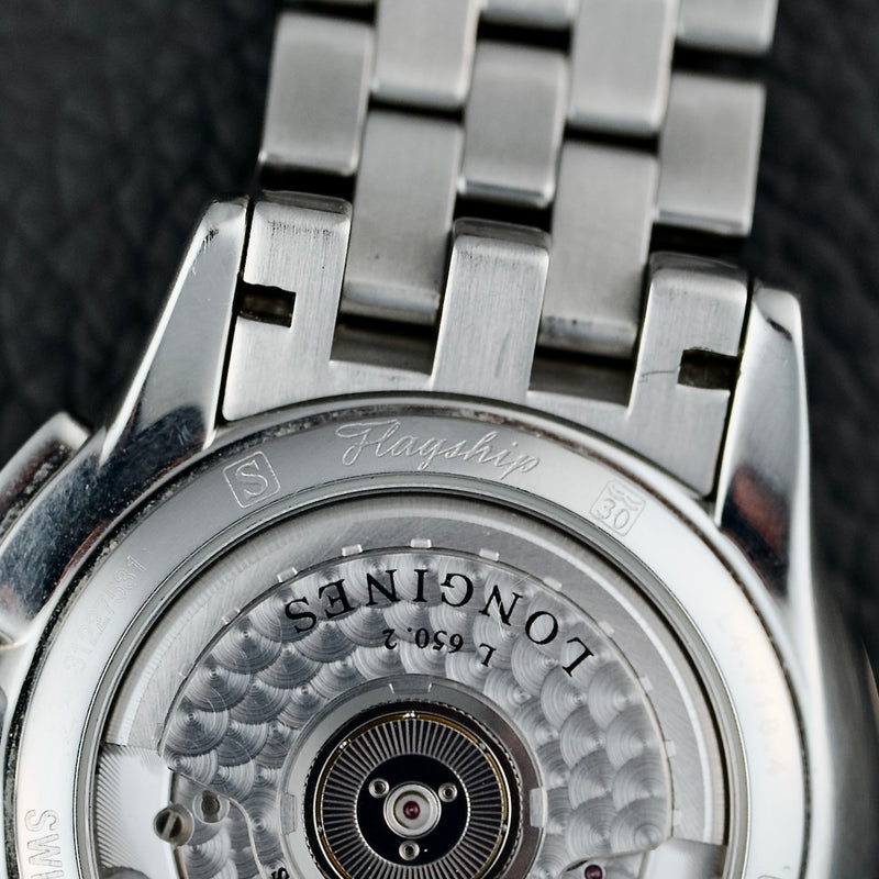 Im Gehäuseboden verbirgt sich das Kaliber Longines L650.2, basierend auf dem ETA 6497/6498, ein robustes Uhrwerk ohne Datumsschnellschaltung. Dieser unpolierte Chronograph befindet sich in perfektem Zustand. Die edlen und widerstandsfähigen Materialien machen ihn zu einer perfekten Uhr für jeden Anlass.