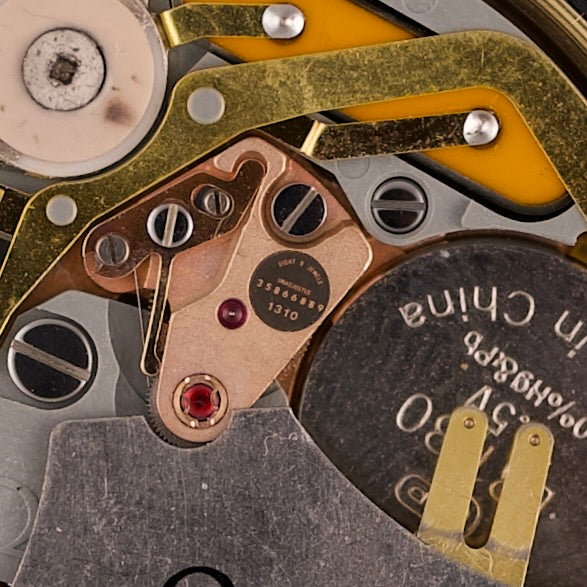 Im Inneren befindet sich das Kaliber 1310, ein hochpräzises Quarzwerk auf Basis eines 32.768 Hz Oszillator. Eine Frequenz, die inzwischen zum weltweiten Standard geworden ist.