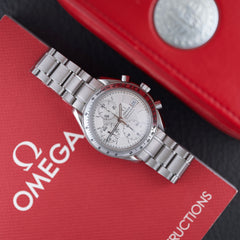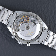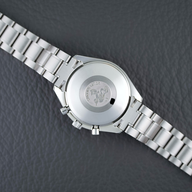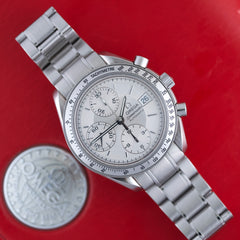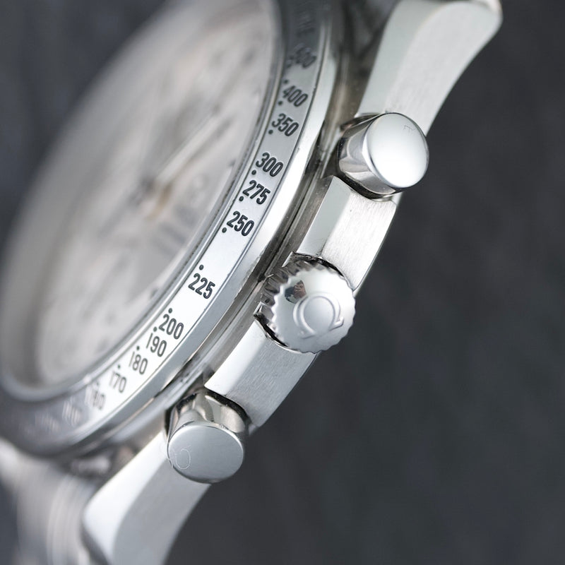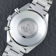 Mit einem Durchmesser von 39 mm und einer Höhe von 14 mm bietet sie einen hervorragenden Kompromiss zwischen Sportlichkeit und Tragekomfort. Diese in den 1990er-Jahren erschienene Version weist die Hauptmerkmale der Speedmaster auf: Tachymeterlünette, Stahlgehäuse, klassische Drücker und Saphirglas. Sie zeichnet sich jedoch durch ihr vertikales, silbernes Tricompax-Zifferblatt und das Datumsfenster bei 3 Uhr aus.