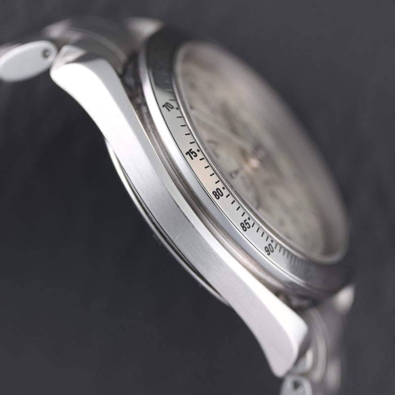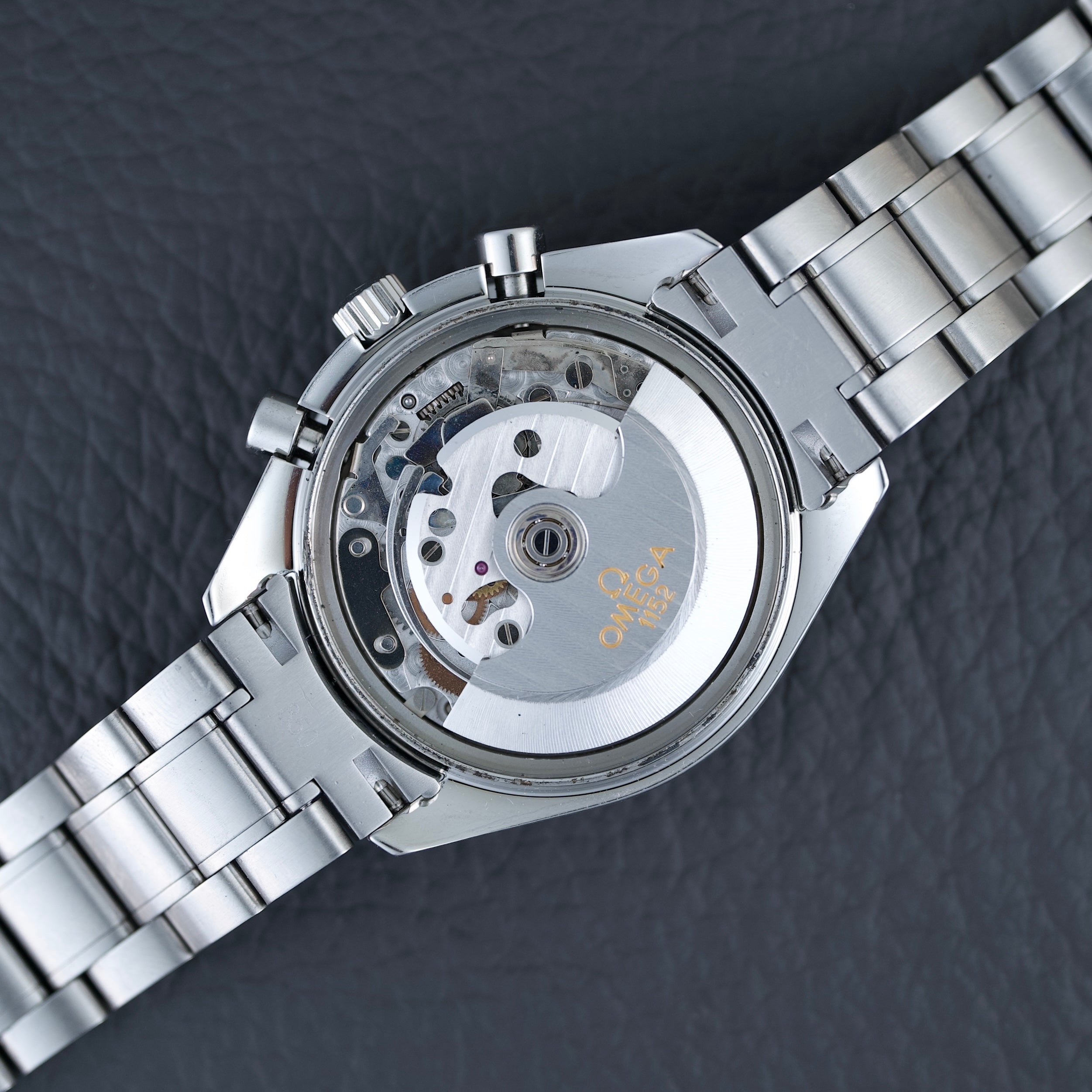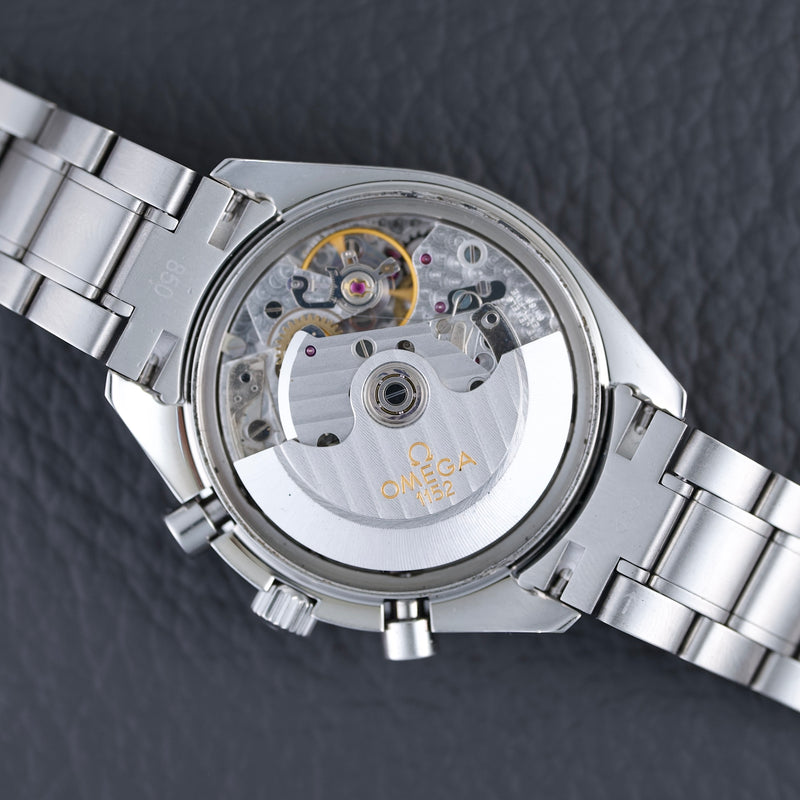 Es verfügt über das Omega-Kaliber 1152, basierend auf dem äußerst zuverlässigen ETA 7750, das eine Gangreserve von 44 Stunden und bewährte Robustheit bietet. Dieses automatische Chronographenwerk ist für seine Präzision und Wartungsfreundlichkeit bekannt und somit eine ausgezeichnete Wahl für den täglichen Gebrauch.