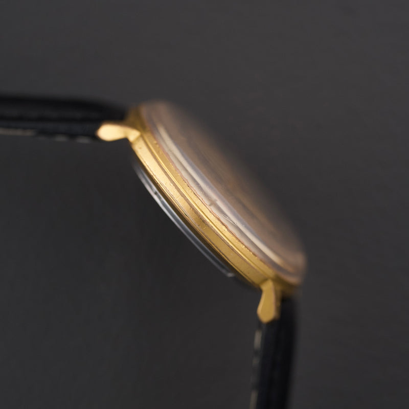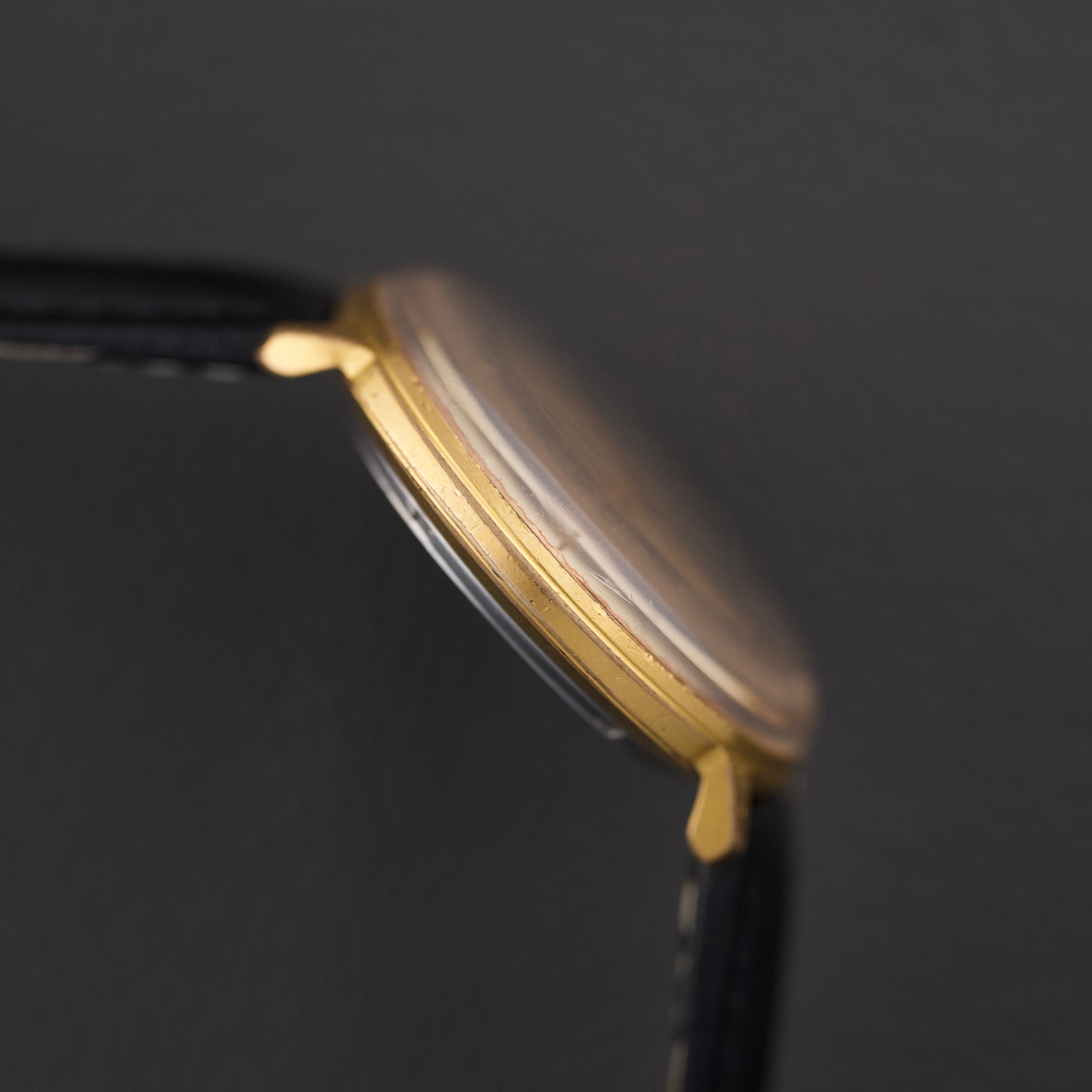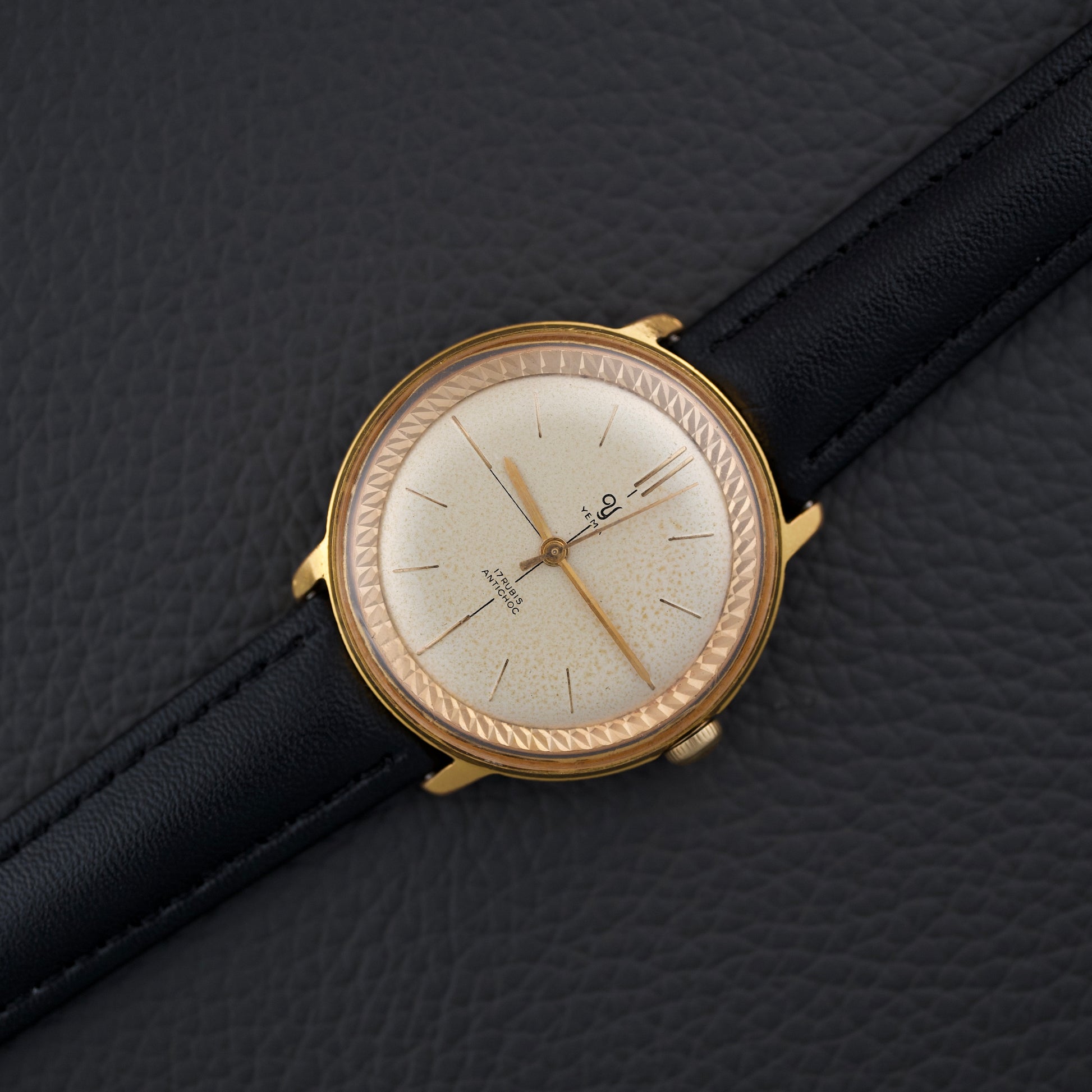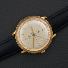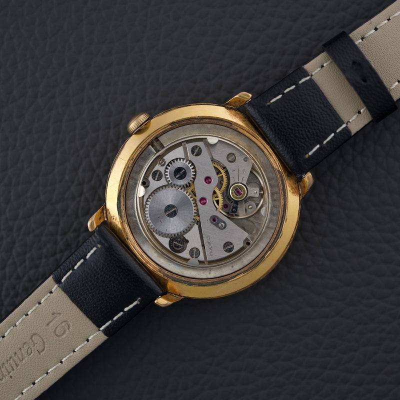 Diese Yema aus den 1950er-Jahren veranschaulicht perfekt den eleganten und innovativen Stil der frühen Modelle der französischen Marke. Hinter ihrer scheinbaren Schlichtheit verbirgt sich ein Detail, das sie sofort erkennbar macht: ein dezentes, aber elegantes kreisförmiges Ornament. Dieses einzigartige Design, das bei Uhren dieser Ära selten zu finden ist, verleiht dem Stück echten Charakter und eine edle Präsenz am Handgelenk.
