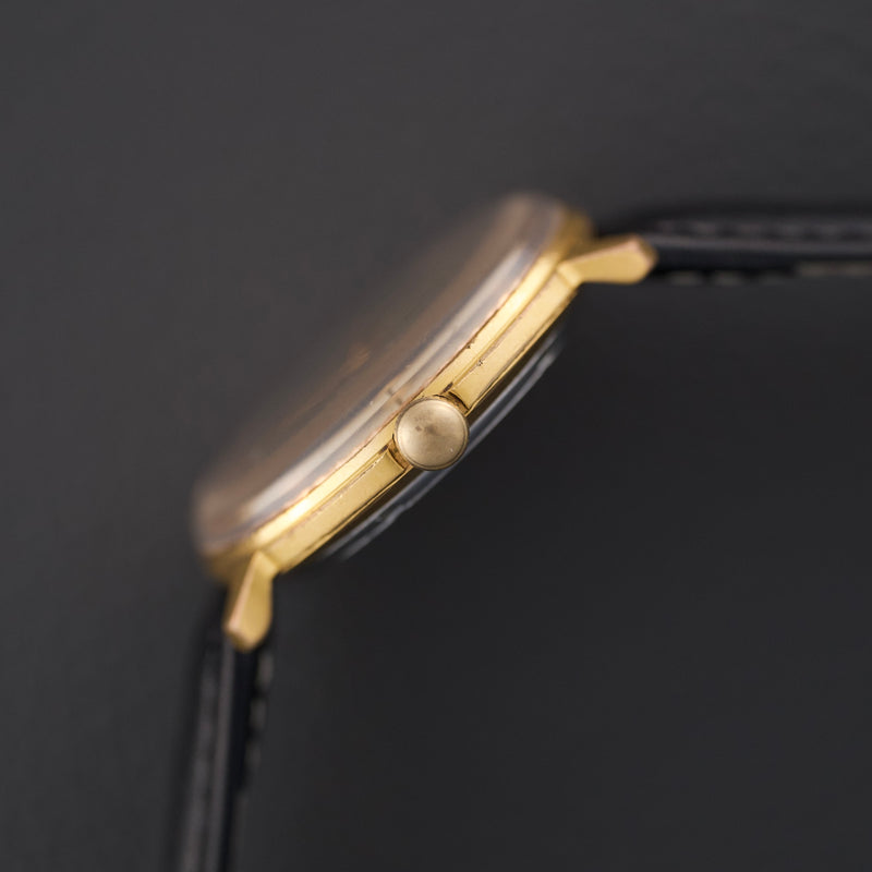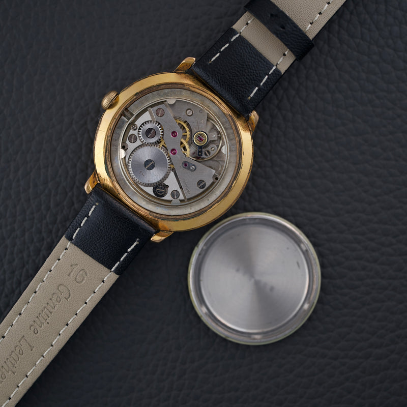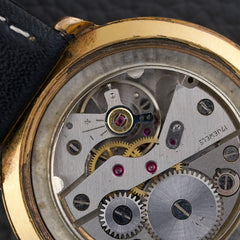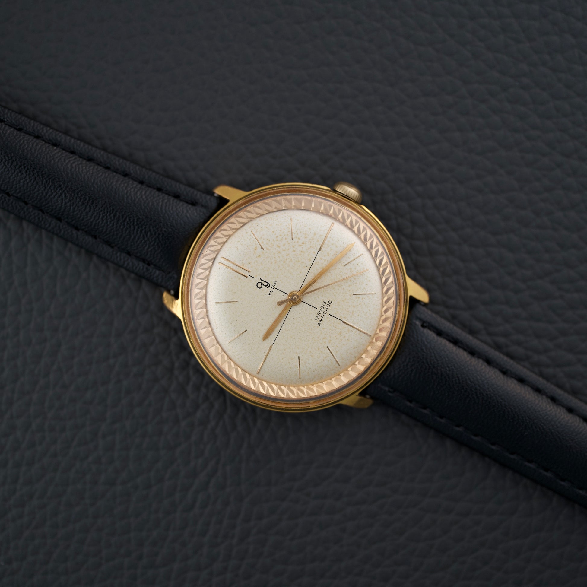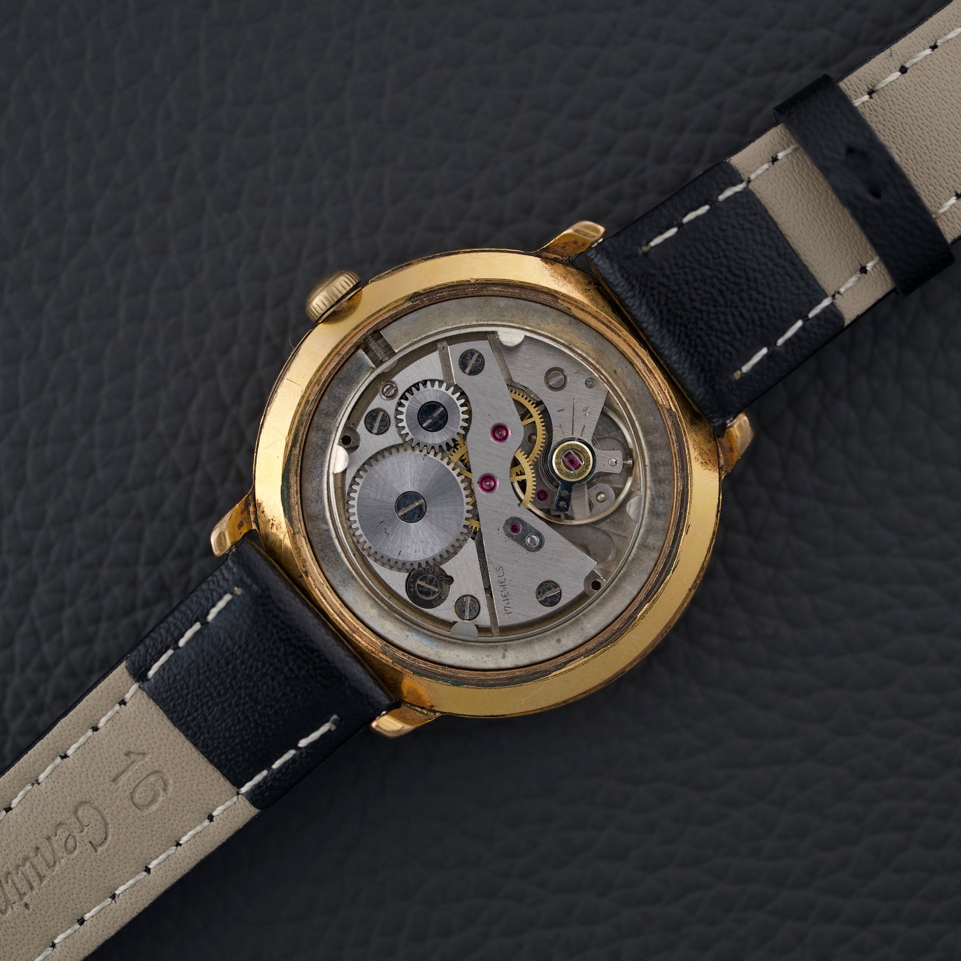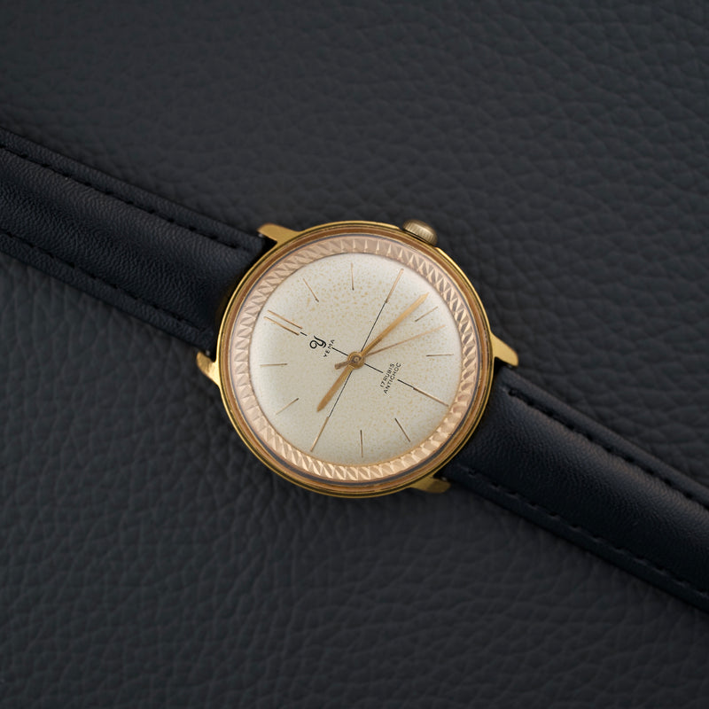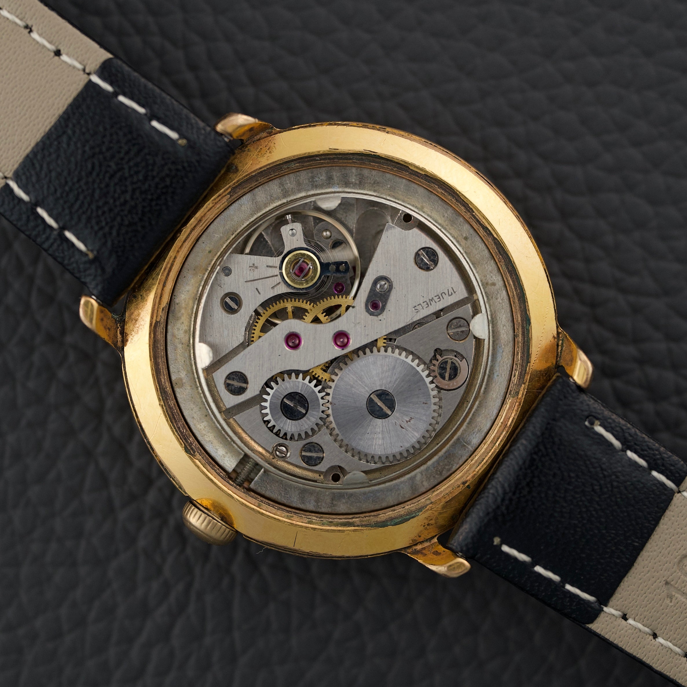 Das schlichte Zifferblatt mit seinen feinen Stabindizes unterstreicht die elegante Schlichtheit, die typisch für die Mitte des 20. Jahrhunderts war. Angetrieben von einem Handaufzugswerk und ausgestattet mit einem Stoßschutz – ein wichtiges Merkmal funktionaler Uhren jener Zeit – vereint diese Yema Vintage-Charme, Eleganz und Funktionalität.