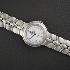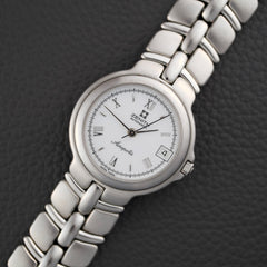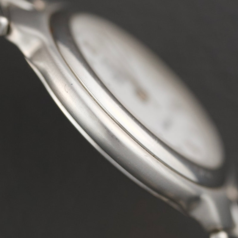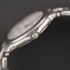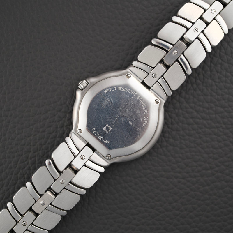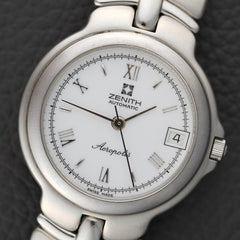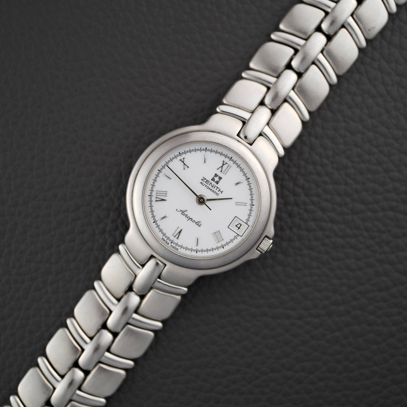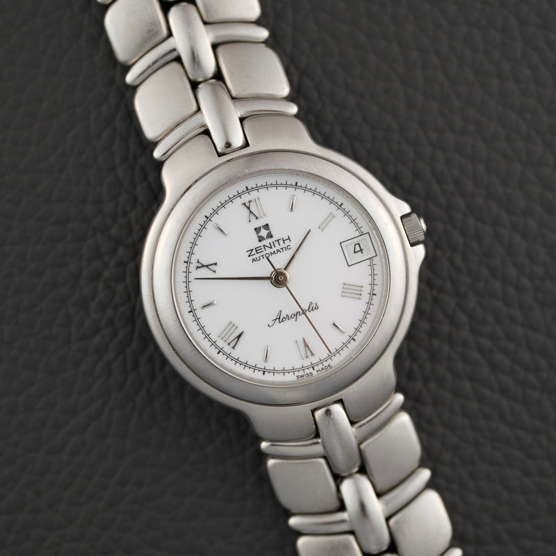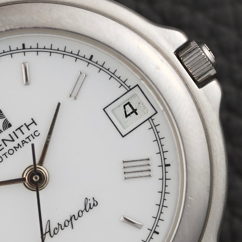 Die Zenith Acropolis, ein seltenes Modell aus der späten Zenith-Produktion des 20. Jahrhunderts, verkörpert perfekt den Wandel der Marke hin zu flacheren, moderneren und eleganteren Uhren. Inspiriert von einer schlichten und funktionalen Ästhetik, betont sie Präzision und Diskretion, unterstützt durch ein kompaktes 34-mm-Design, das an jedes Handgelenk passt.