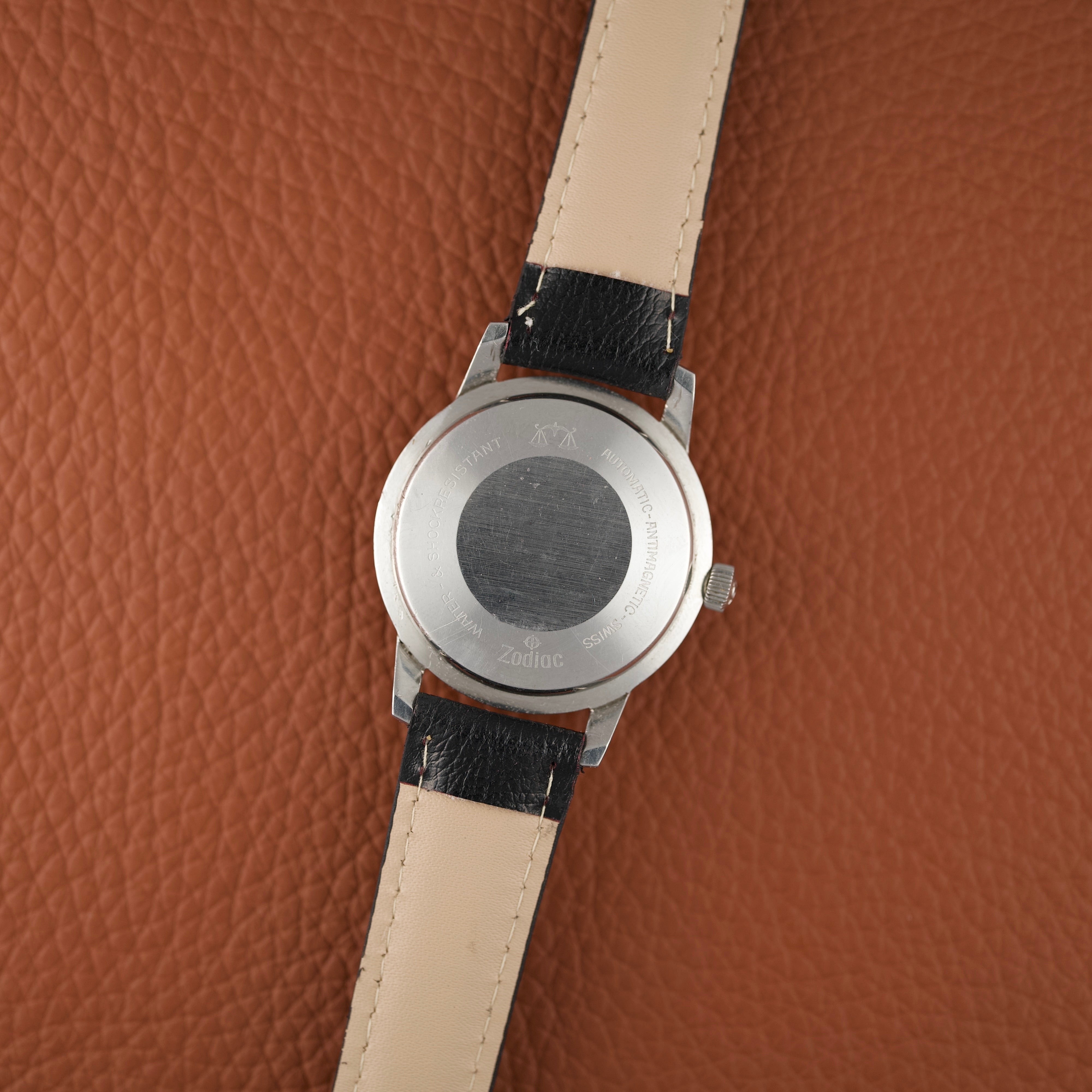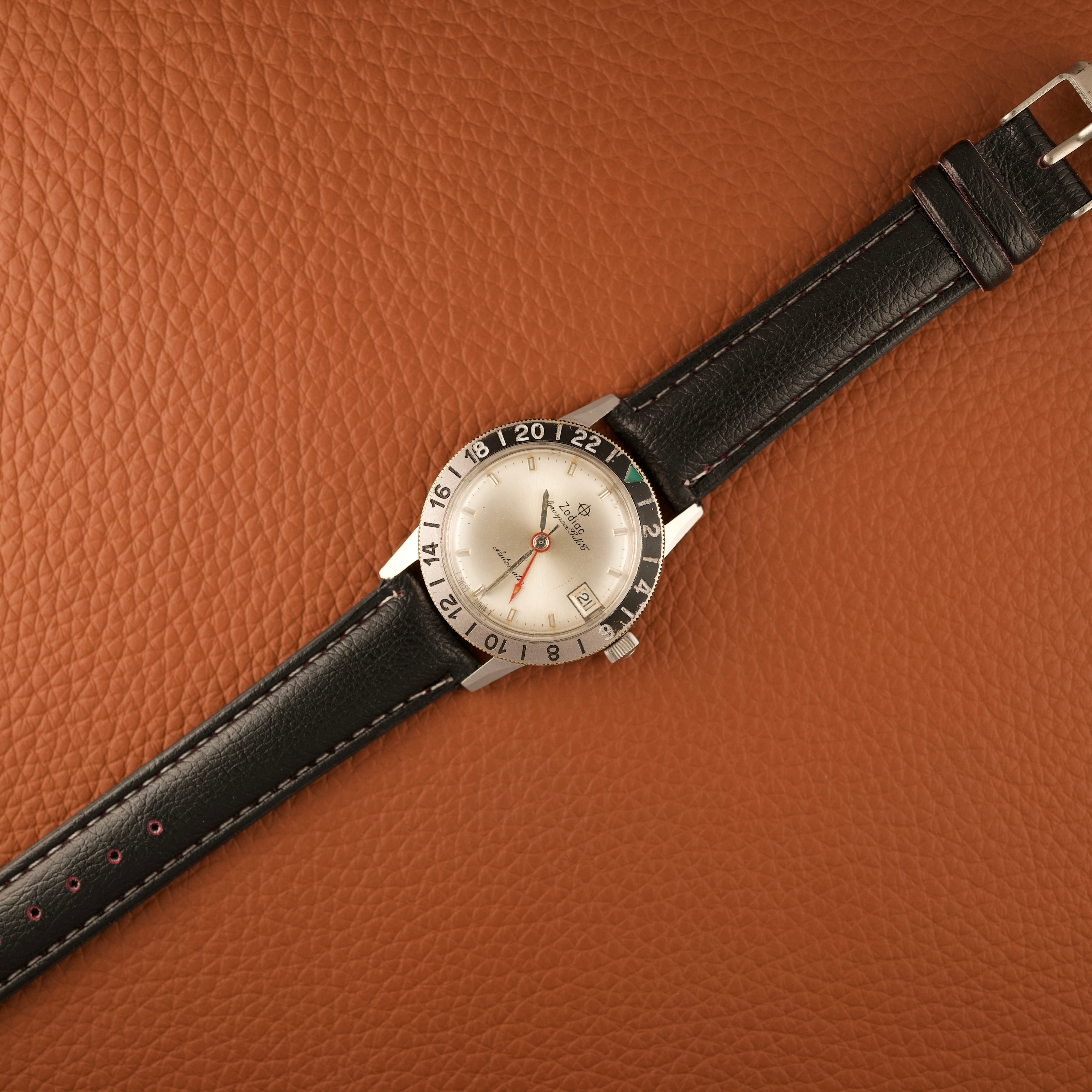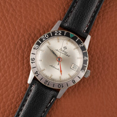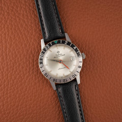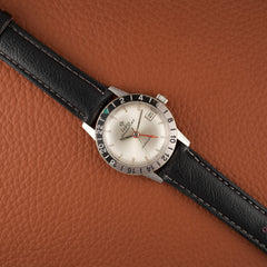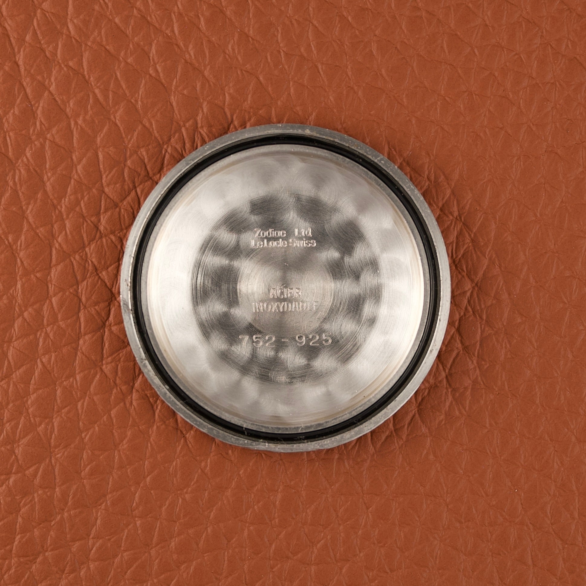 Dieses präzise 35-mm-Modell gehört zur ersten Generation der Aerospace GMTs (Ref. 752-925), die ausschließlich mit weißem oder schwarzem Zifferblatt produziert wurden. Angetrieben wird es vom Manufakturkaliber Zodiac 75 mit Automatikaufzug, einem Qualitätswerk mit 17 Steinen, das für seine Zuverlässigkeit und Präzision bekannt ist.