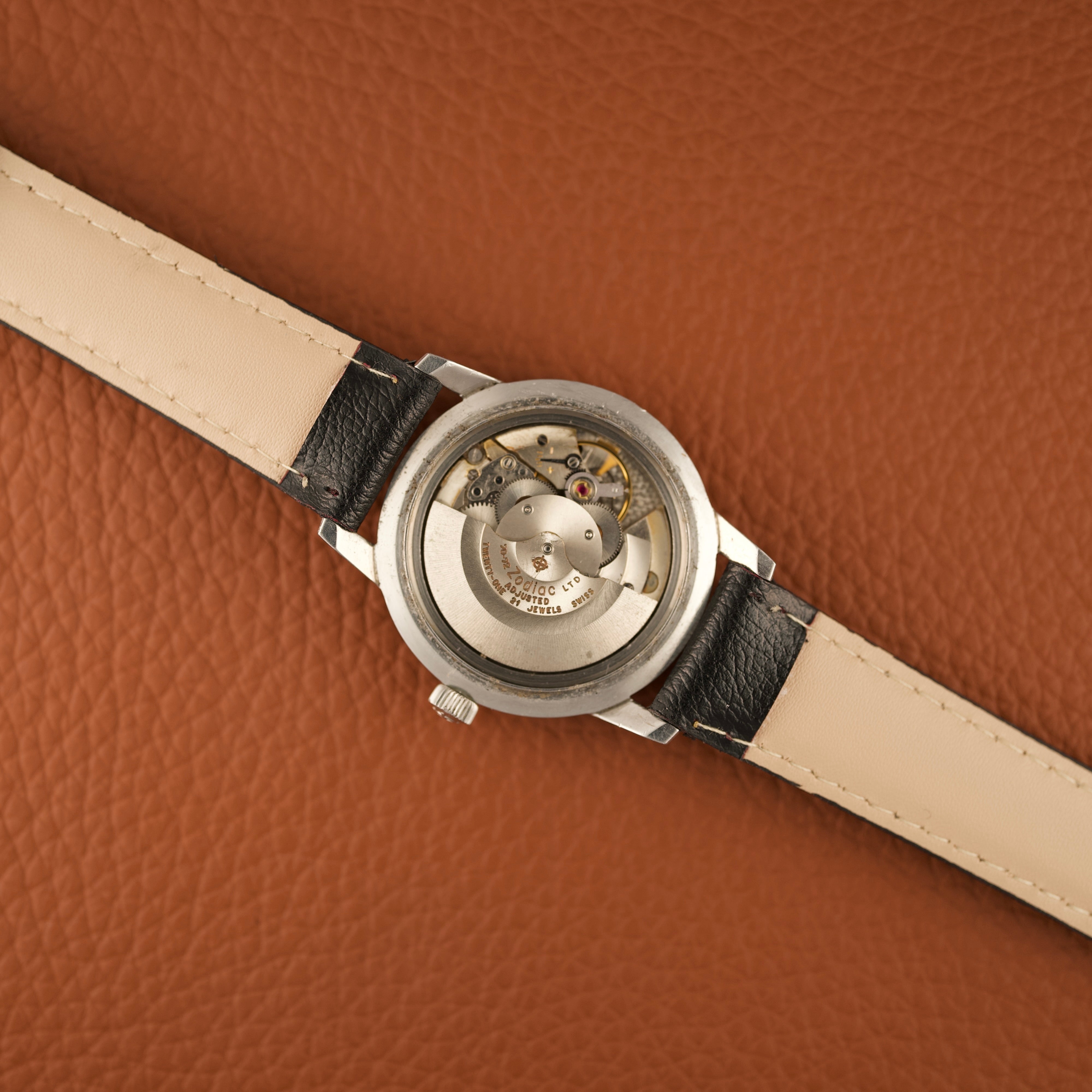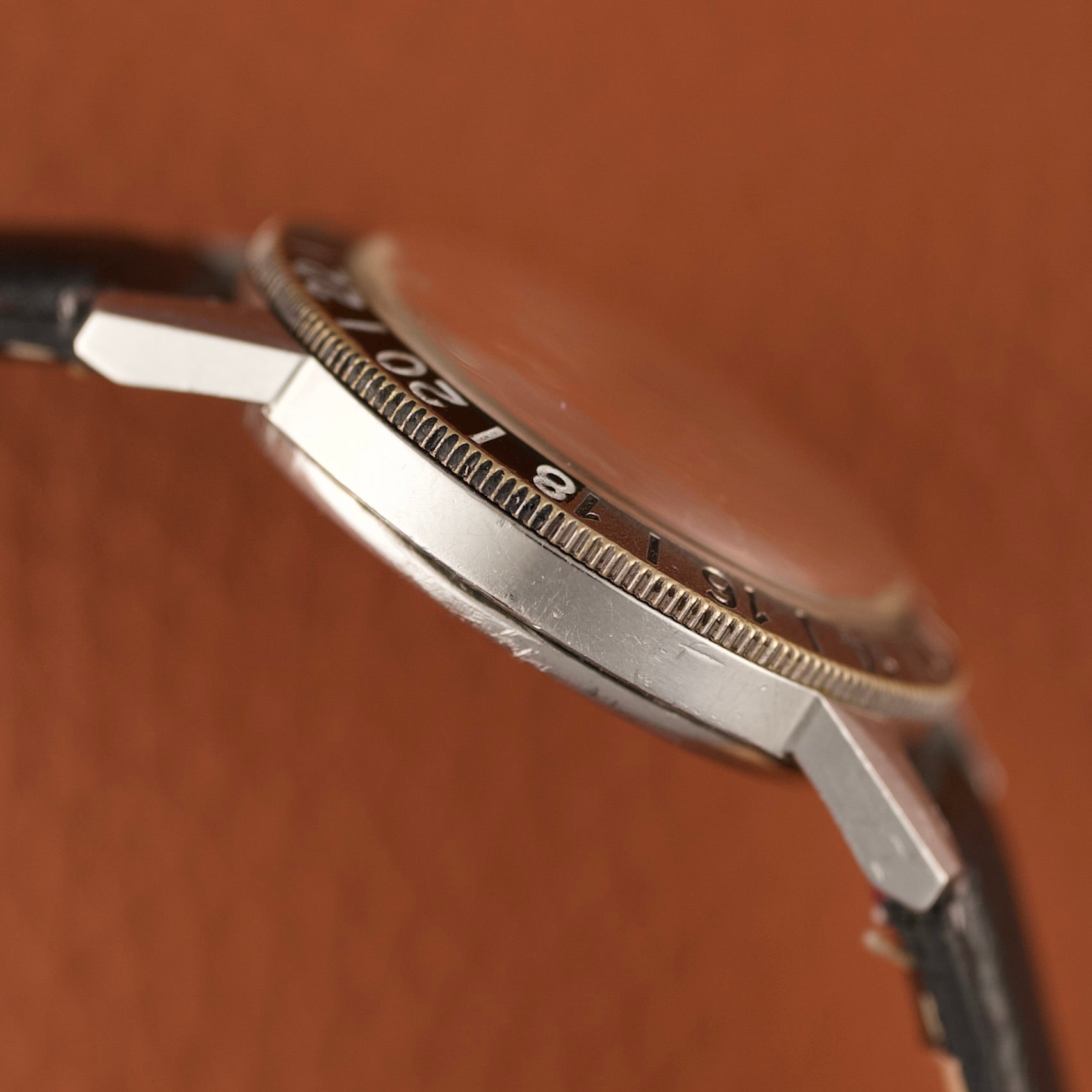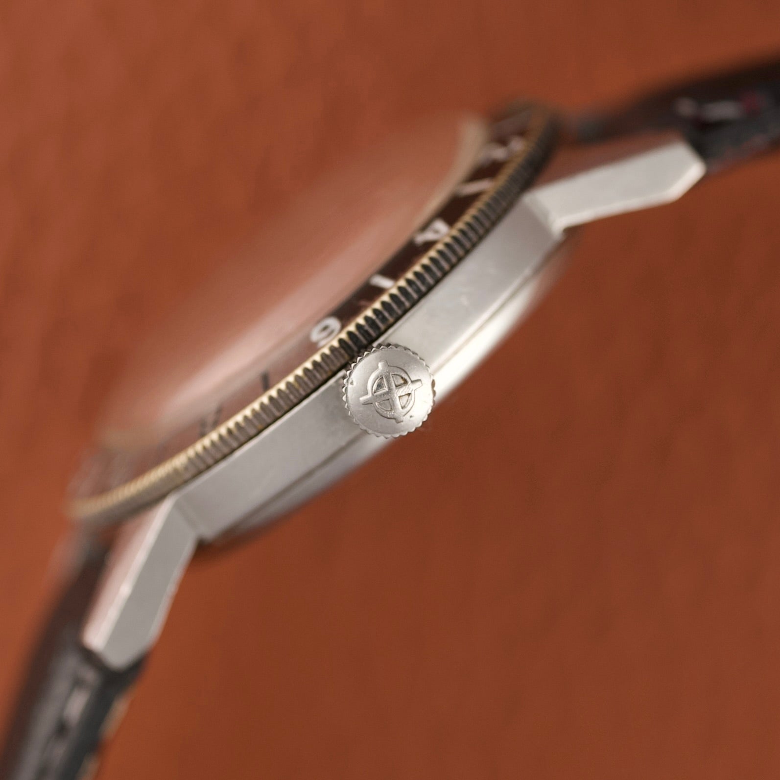 Dieses präzise 35-mm-Modell gehört zur ersten Generation der Aerospace GMTs (Ref. 752-925), die ausschließlich mit weißem oder schwarzem Zifferblatt produziert wurden. Angetrieben wird es vom Manufakturkaliber Zodiac 75 mit Automatikaufzug, einem Qualitätswerk mit 17 Steinen, das für seine Zuverlässigkeit und Präzision bekannt ist.