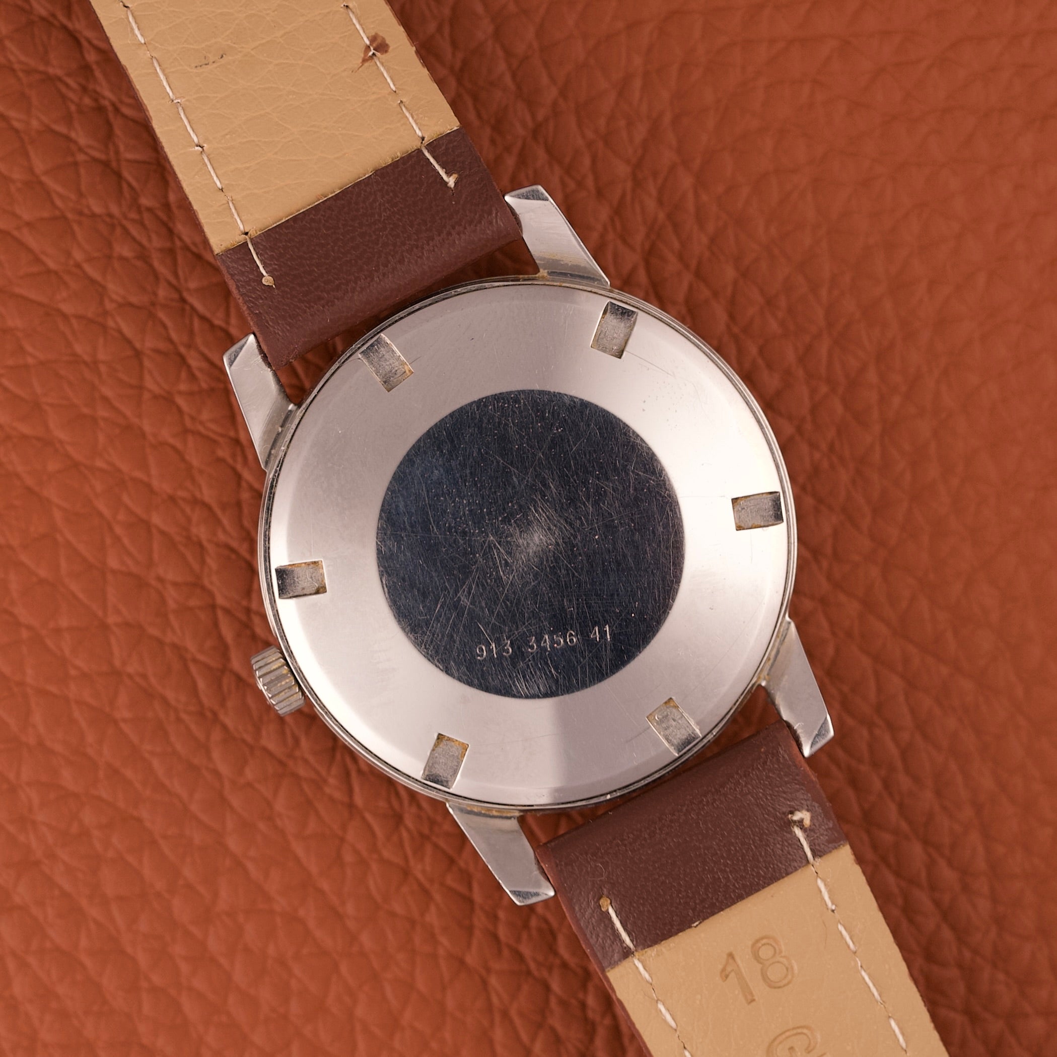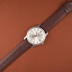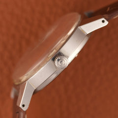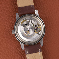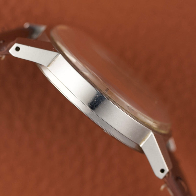 With its 35 mm stainless steel case, this watch displays a sober and efficient design, typical of timepieces of this era.