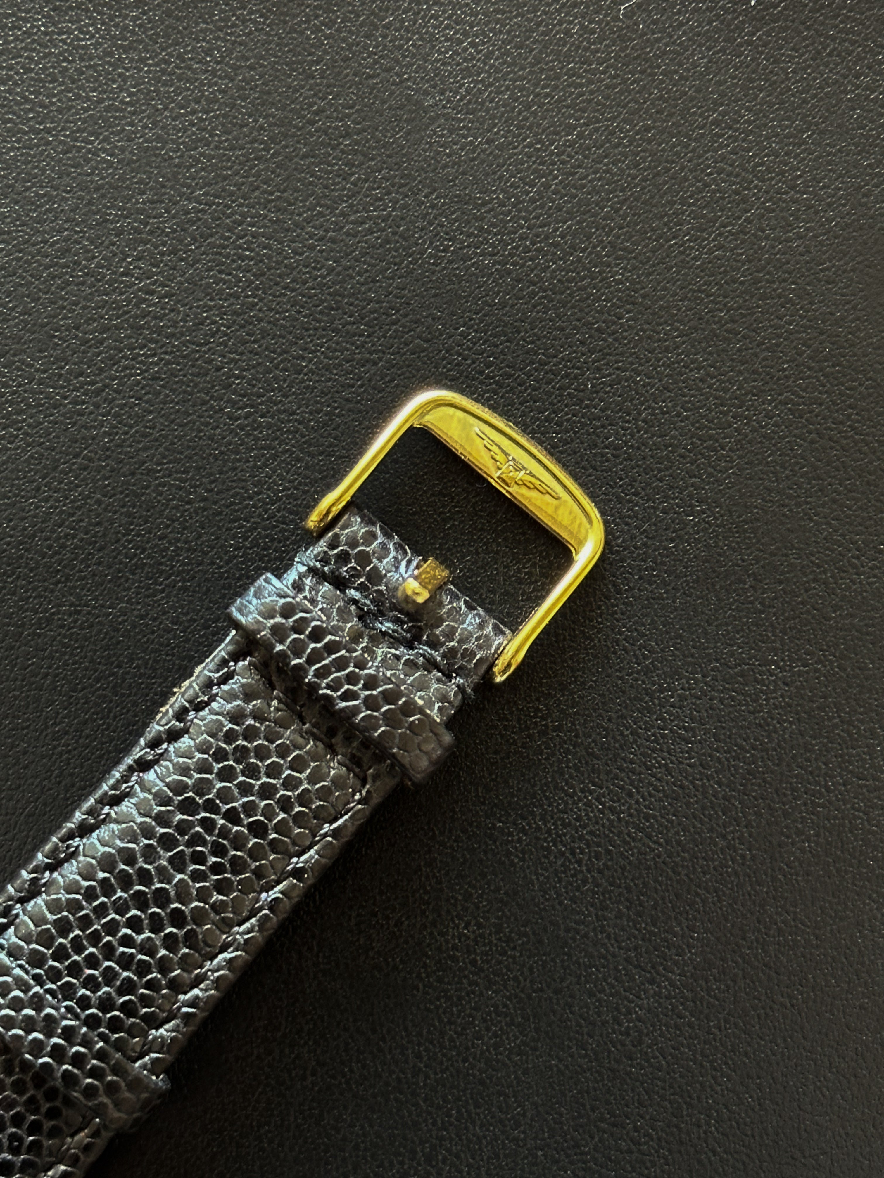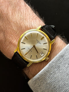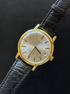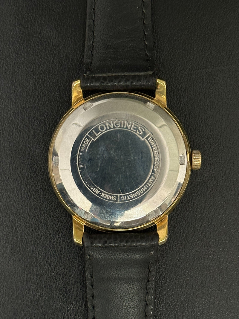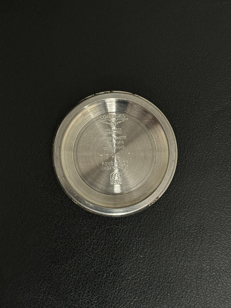 It is dated between the period 1960-1969 and remains in very good general condition considering its age. Some traces of use are visible on the case, it has not been polished to maintain its history and authenticity. Its silver dial is in impeccable condition. Only a shock on the case at 9 o'clock should be noted. It has all its original parts (dial, hands, crown, caseback) and is accompanied by its beautiful Longines bracelet in black leather.