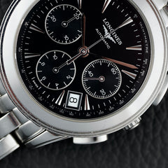 The Flagship collection, launched in the 1950s, is a perfect illustration of this, combining understated elegance, refinement, and in-house expertise. The L4.718.4 reference, produced in the early 2000s, transposes this heritage with a modern twist into an automatic chronograph with a compact 39mm diameter.
