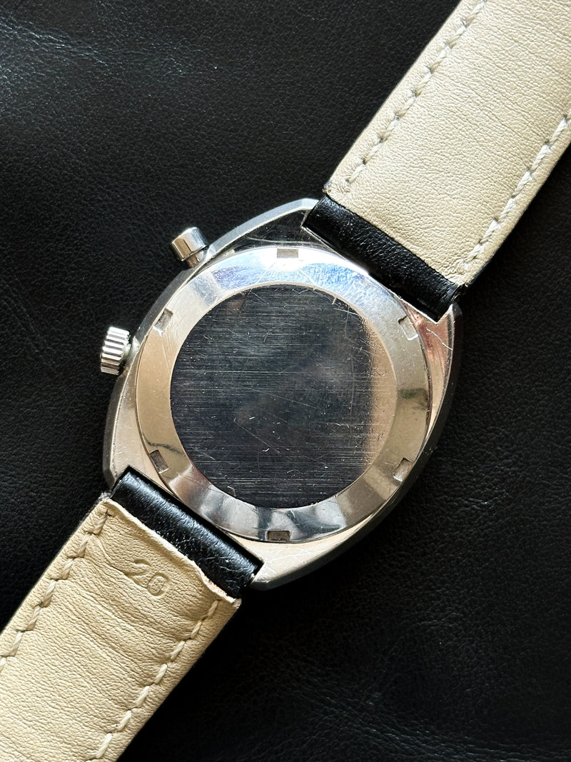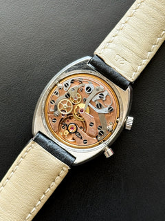This one is a Chronostop reference 146.009 from 1969, one of the most classic of the collection, with a diameter of 35mm. It is equipped with the caliber 920 giving it a power reserve of 40 hours. It comes with the following elements: