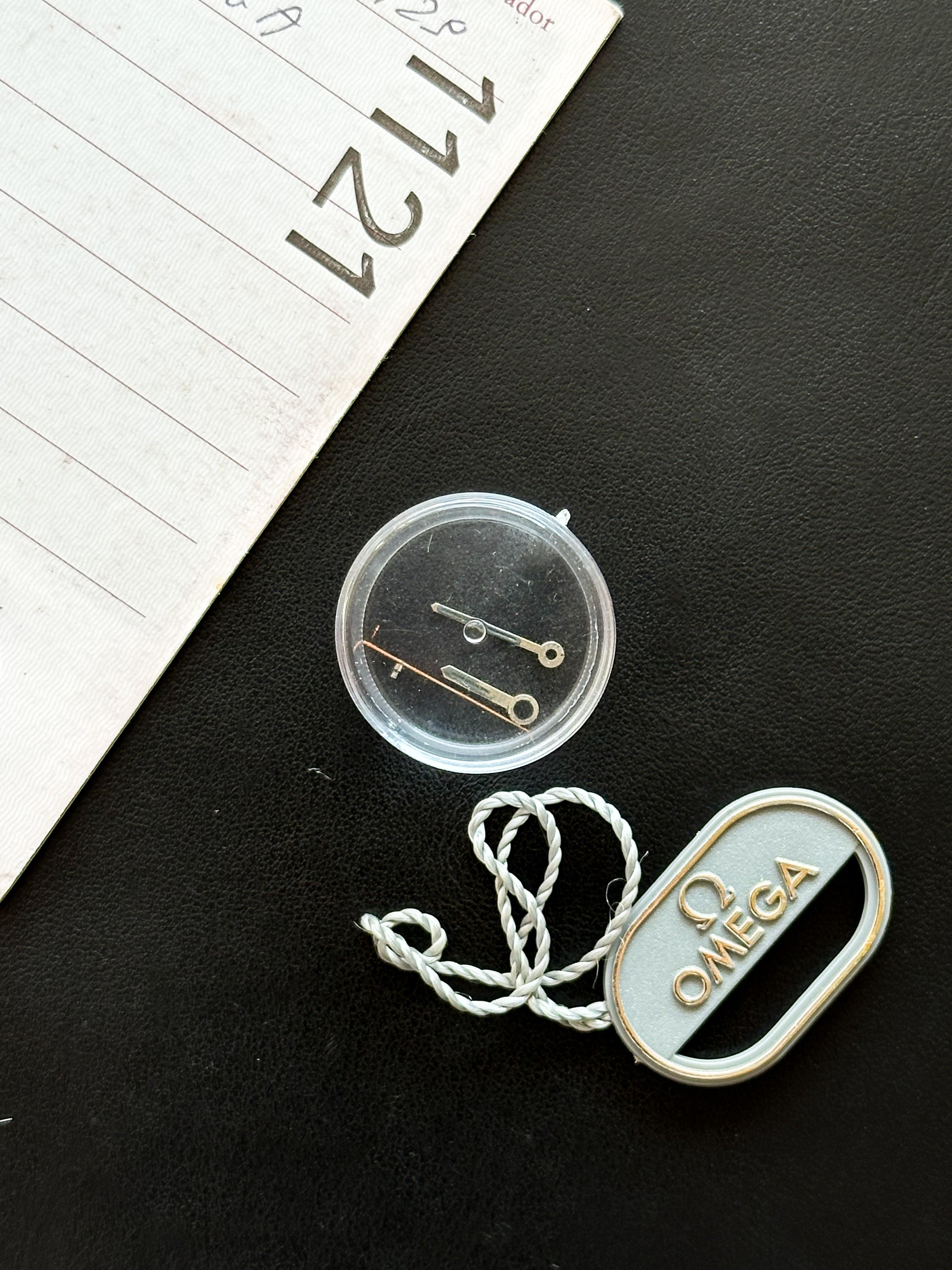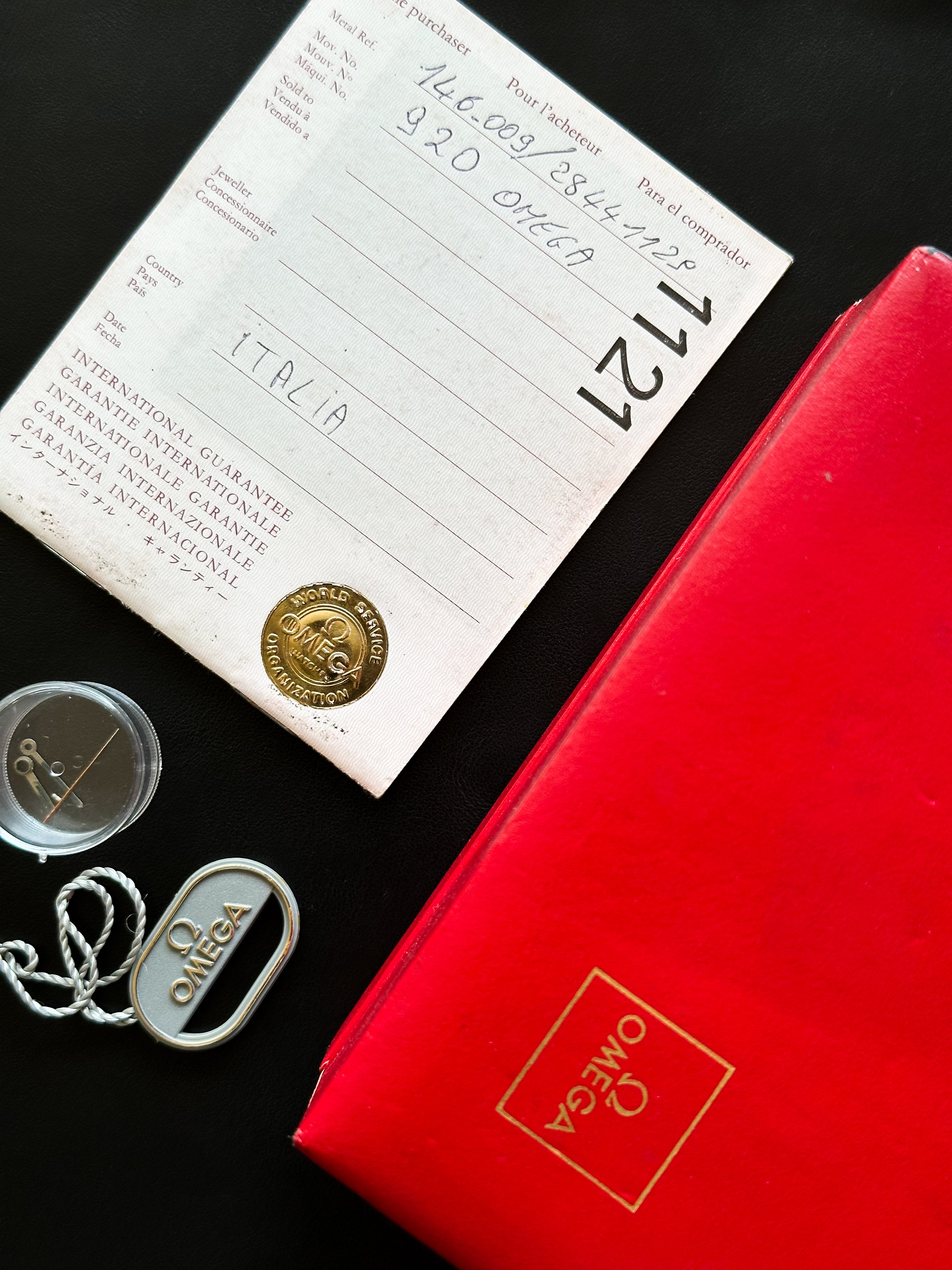 The watch was serviced in March 2024. The original hands had to be changed due to their condition. They were replaced with a set of original Omega hands (the same as for this exact model). The original hands will also be passed on.