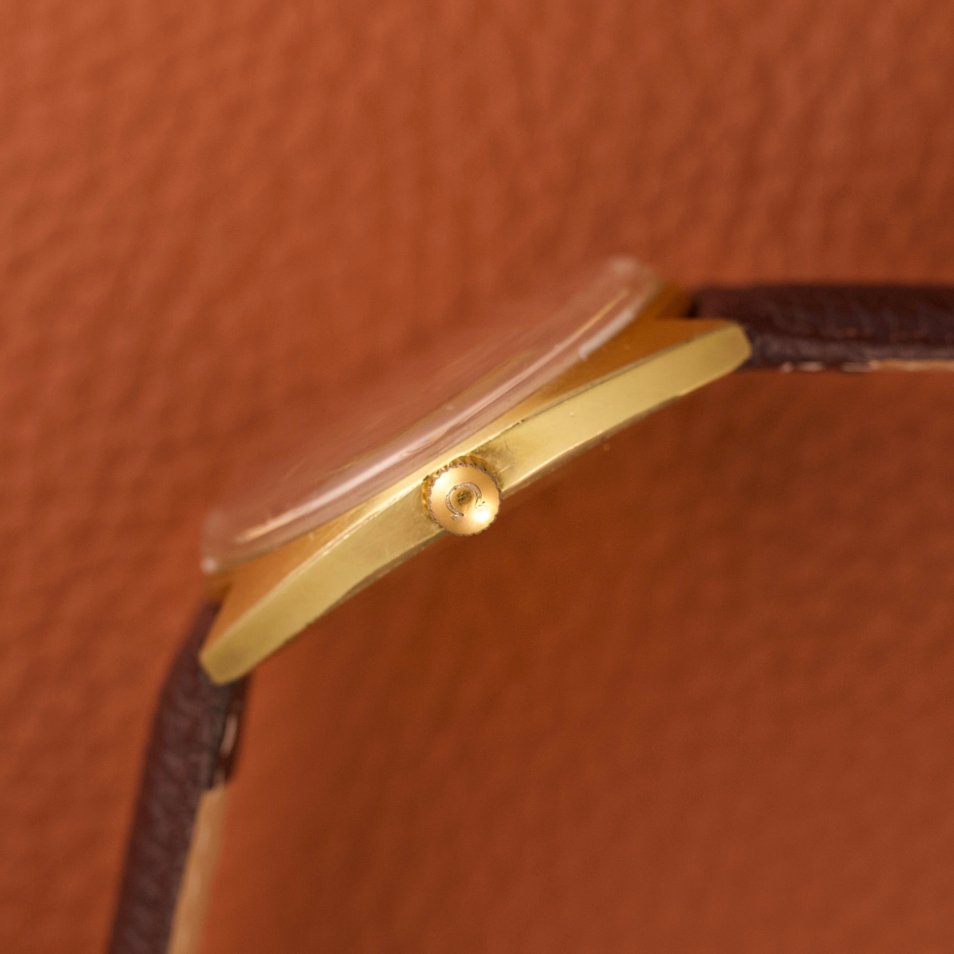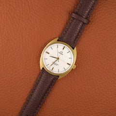 This Omega features a beautiful white dial mounted on a gold-plated case. This understated combination complements its 35mm UFO-style case. It's powered by the renowned 601 caliber, renowned for its robustness.