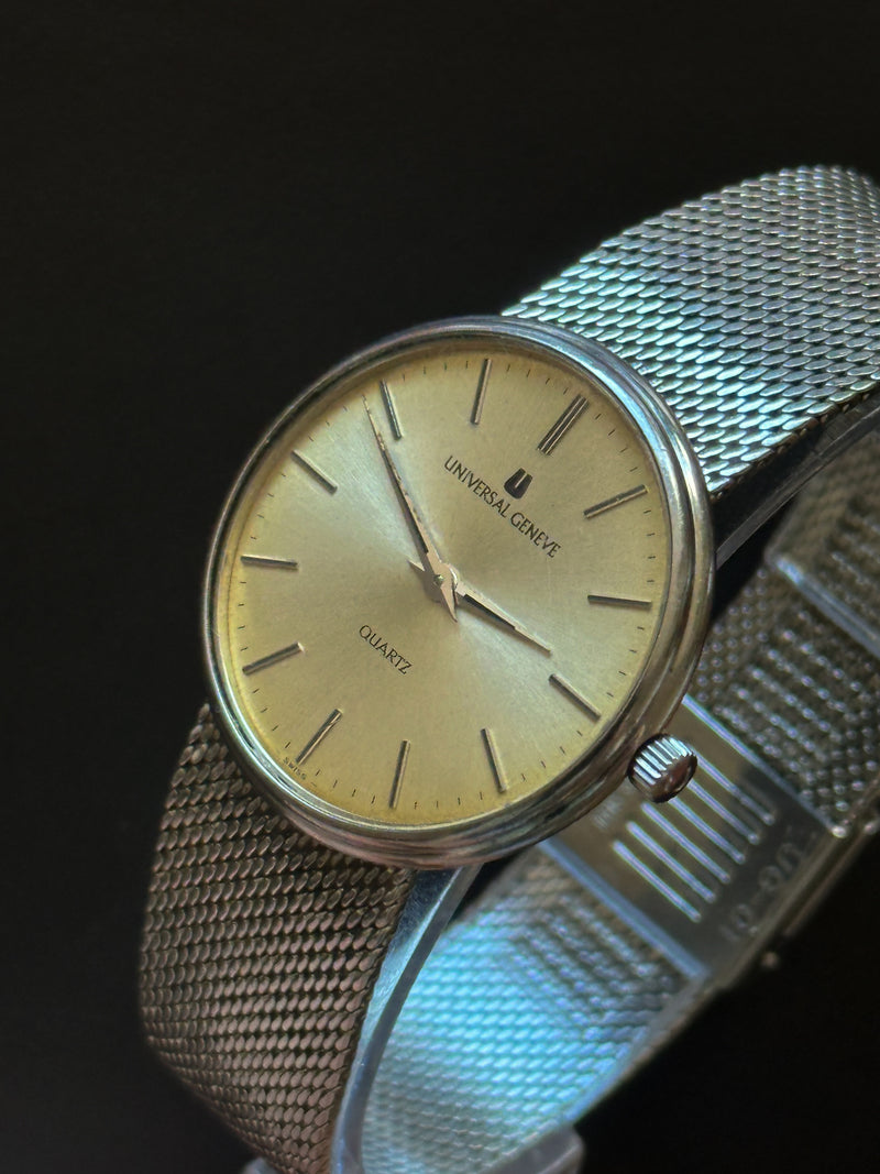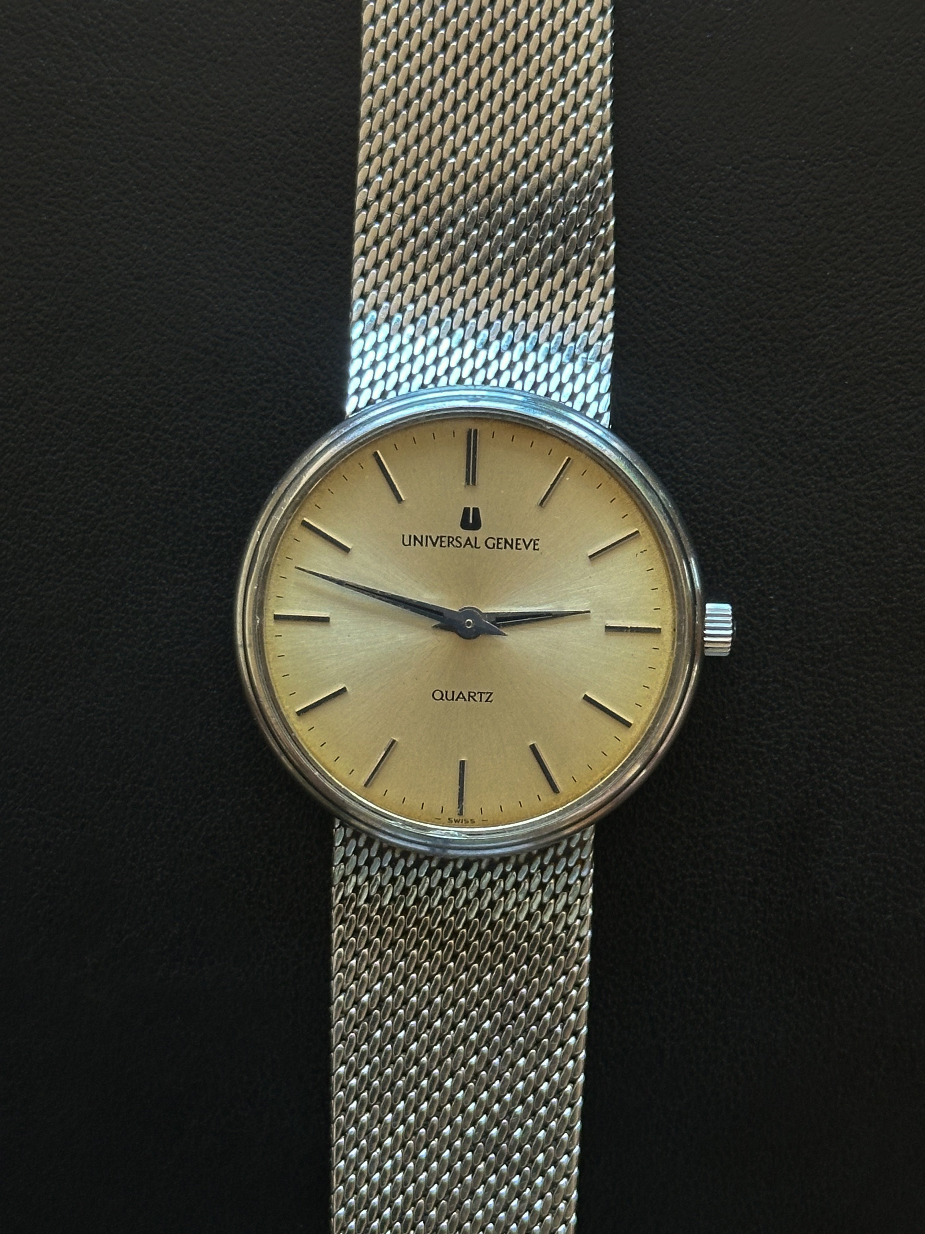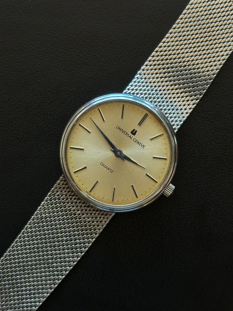 A little refinement with this Universal Genève Quartz watch, reference 1-586, equipped with the 1-43 quartz caliber.