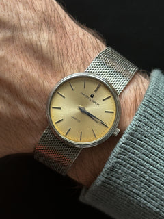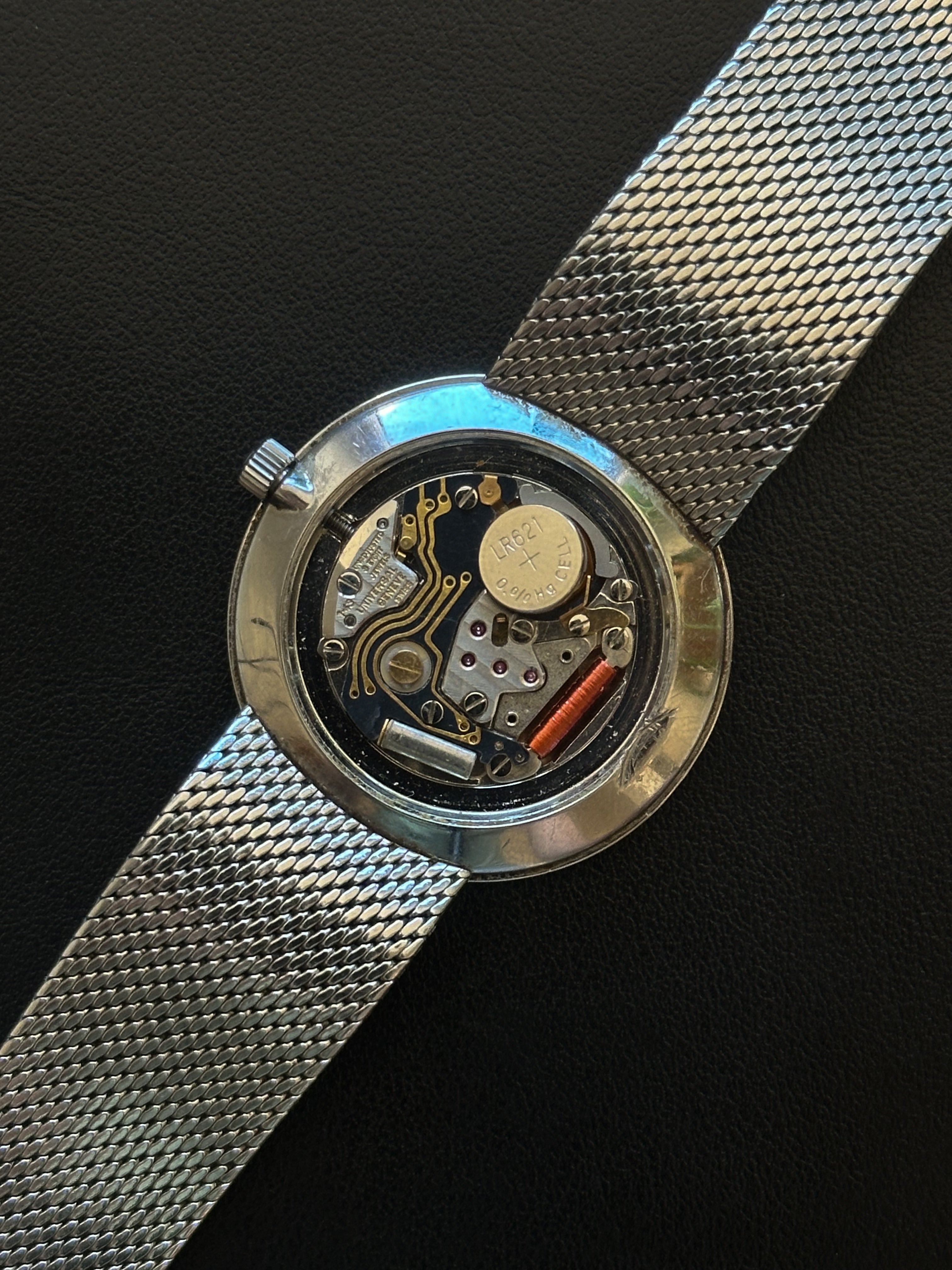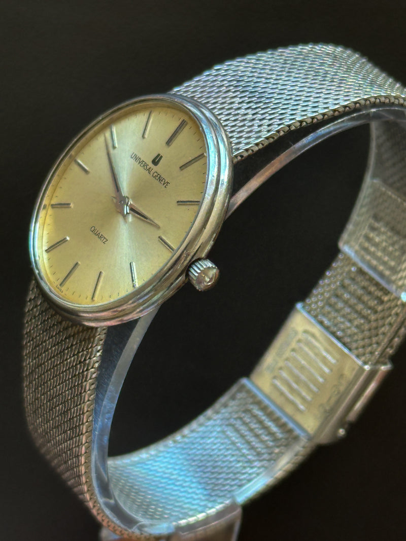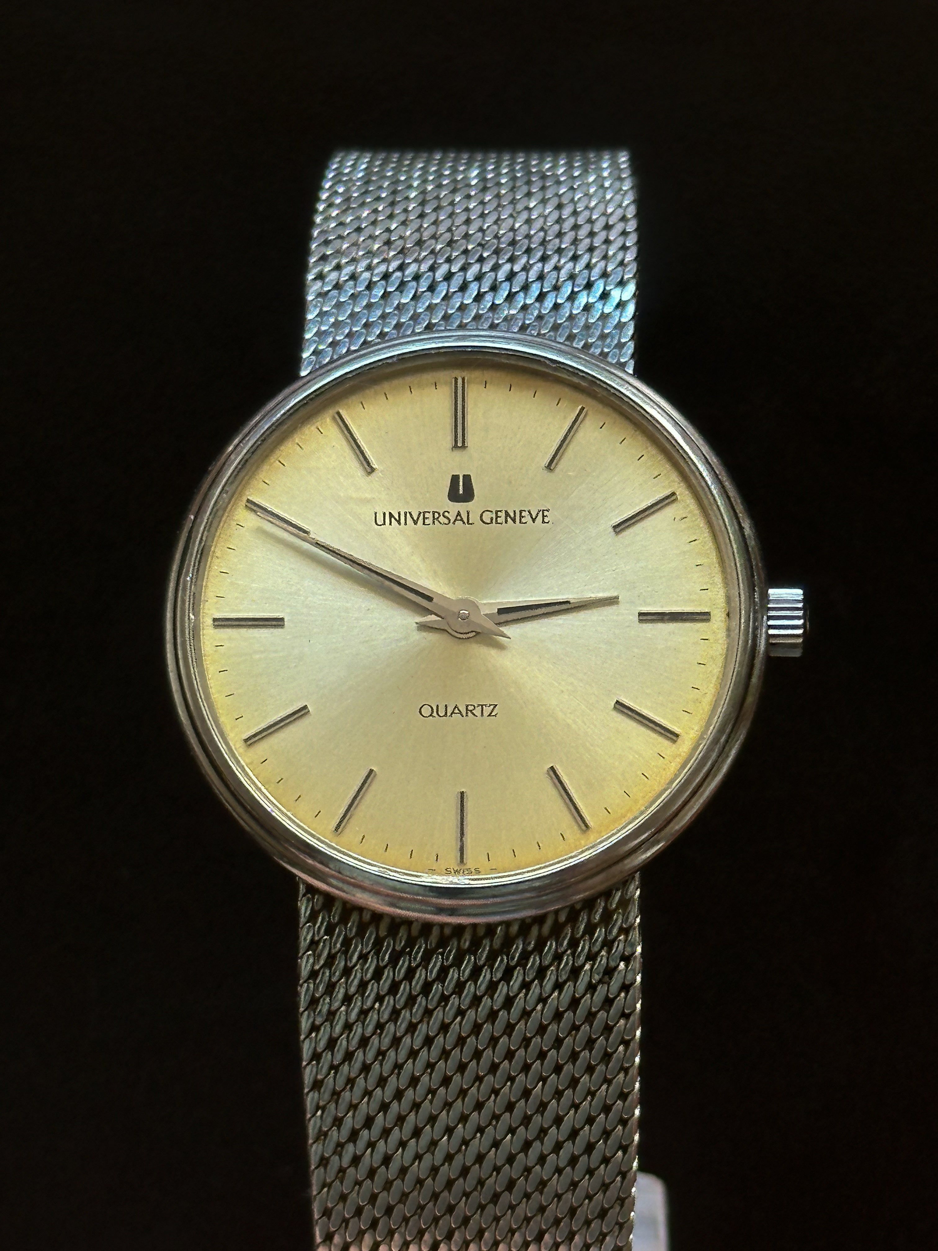 A little refinement with this Universal Genève Quartz watch, reference 1-586, equipped with the 1-43 quartz caliber.
