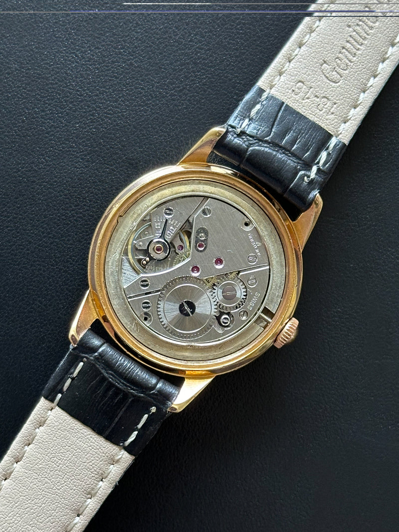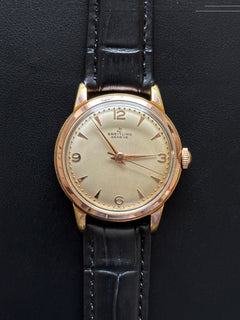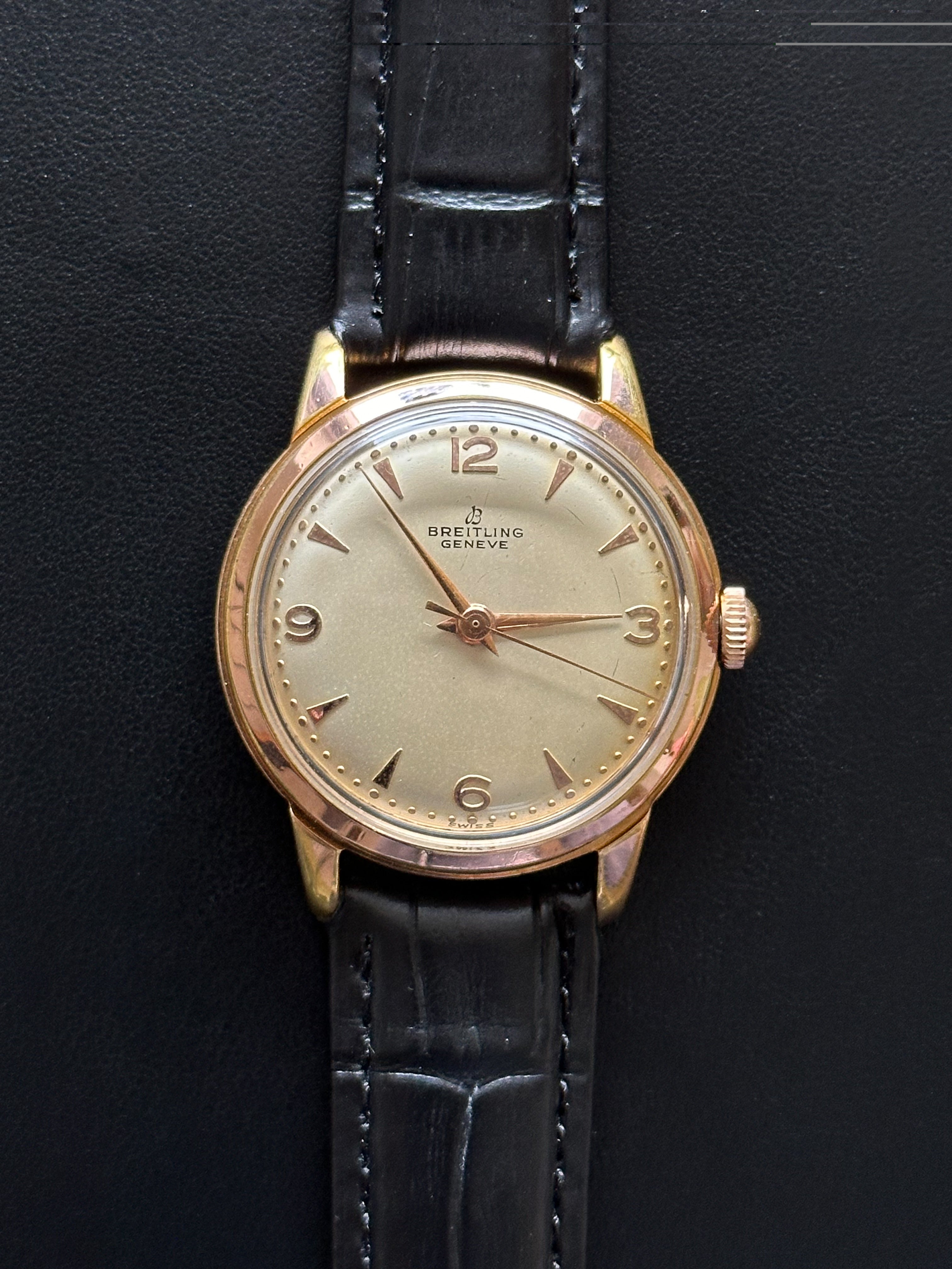 Magnifique Breitling Genève 2912 de 1956. Cette pièce de 33mm dégage une élégance et une classe qui reflète le style des montres de cette période. Son design simple et délicat en fait une belle montre habillée.