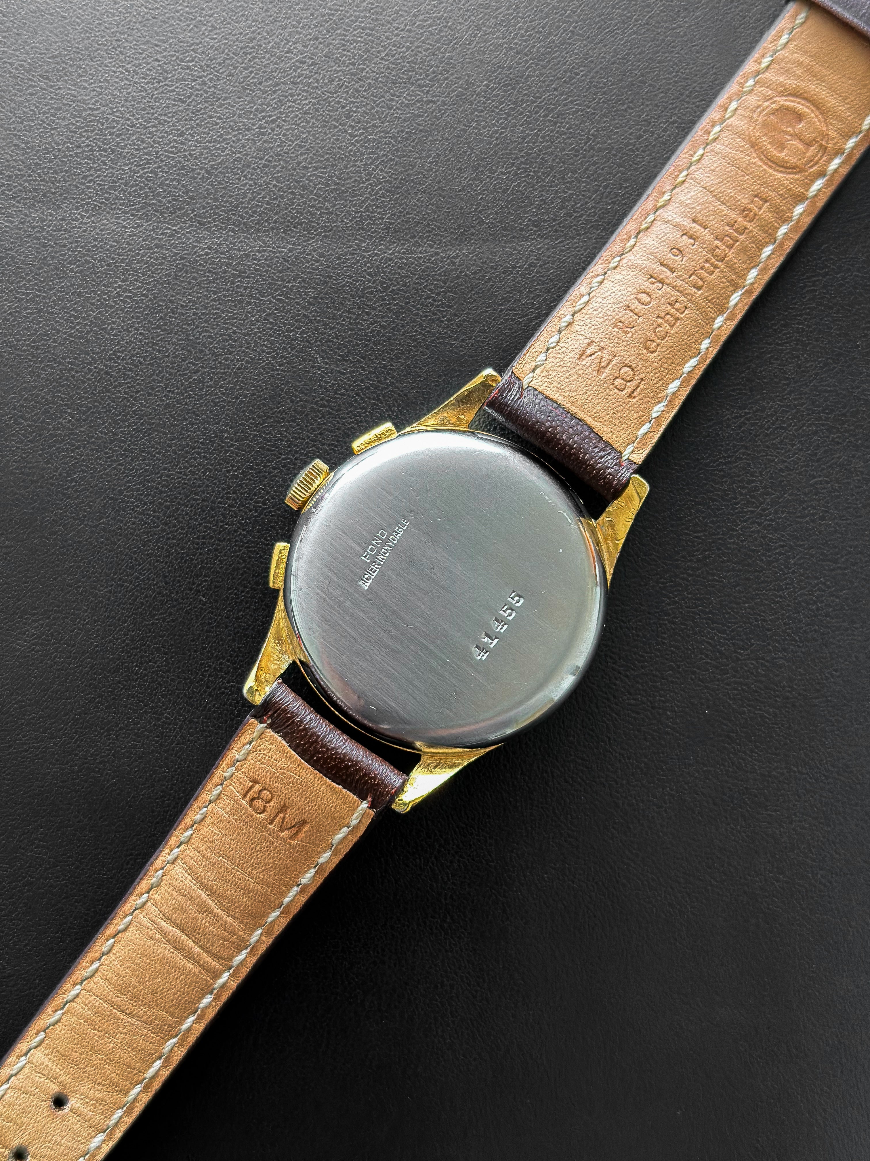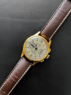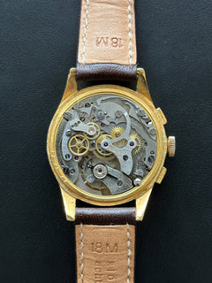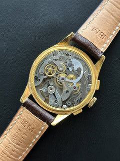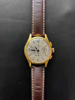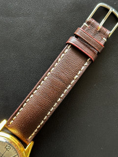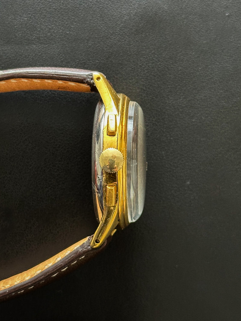 Cette pièce est un état quasiment impeccable. Le boîter présente de légères traces d'utilisation (non poli) pour garder son authenticité au maximum. Le cadran crème présente une patine générale. Cette pièce dispose de son cadran, aiguilles, couronne, fond de boîte d'origine. Il vient avec un bracelet générique en cuir marron presque neuf.