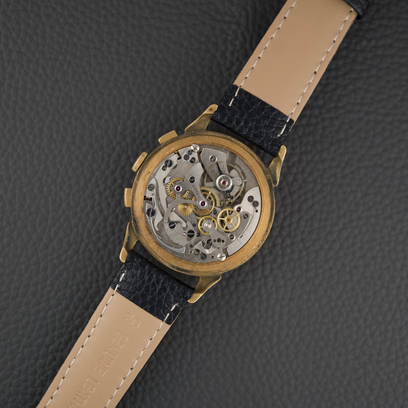 Cette montre incarne parfaitement l’esprit des chronographes suisses d’après-guerre : élégants, accessibles et dotés d’une mécanique durable.