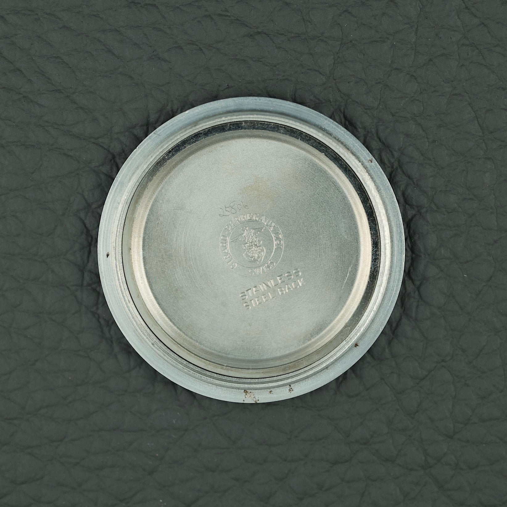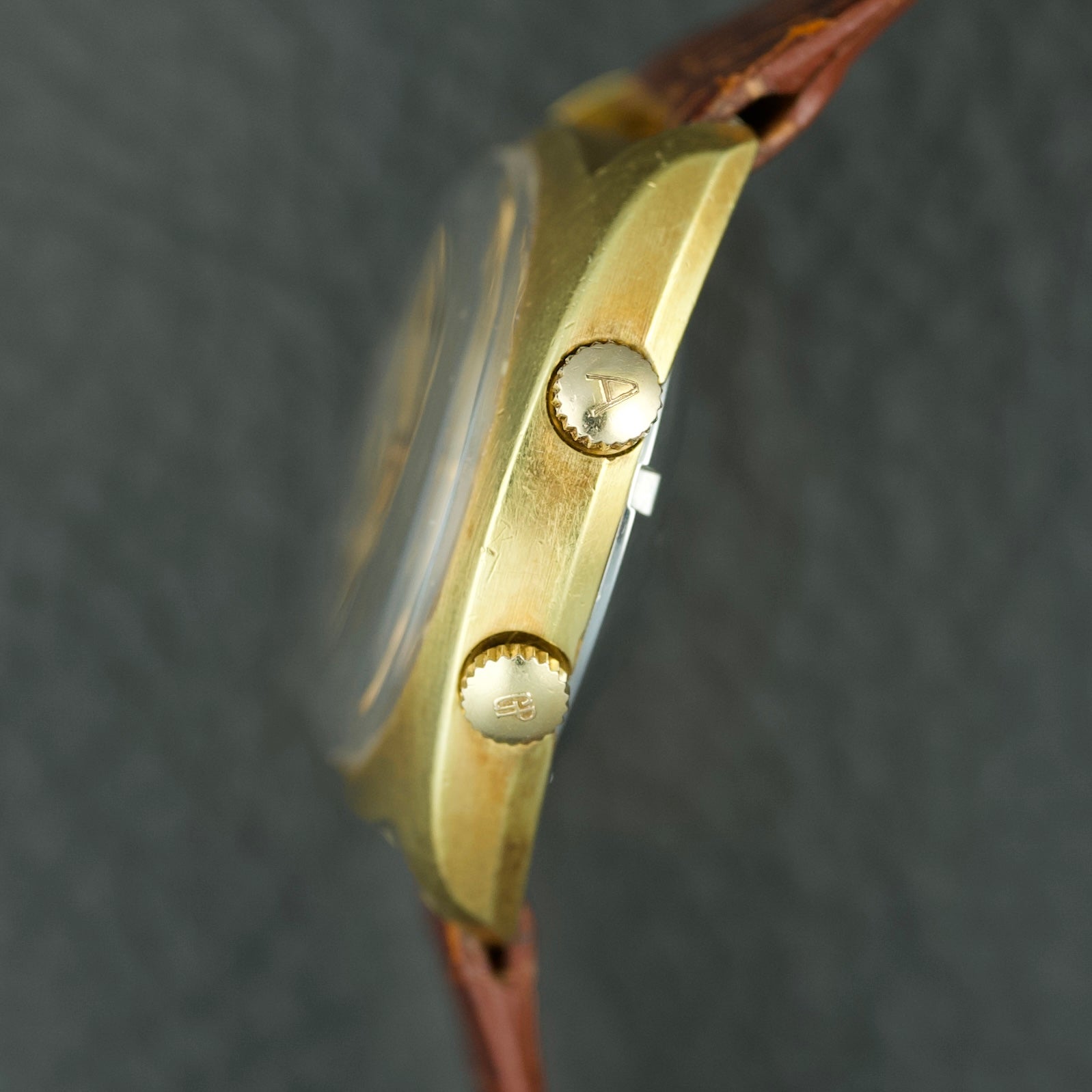 Connue pour son système d'alarme ingénieux, cette montre se distingue des autres modèles d'alarme Gerard-Perregaux de l'époque par l’absence du disque rotatif habituel et de la fenêtre arquée. Ils sont remplacés ici par une élégante aiguille avec flèche pour régler l'alarme. Le boîtier en acier inoxydable de forme coussin, d'un diamètre de 35,5 mm lui confère un design assez unique et moderne pour l'époque.