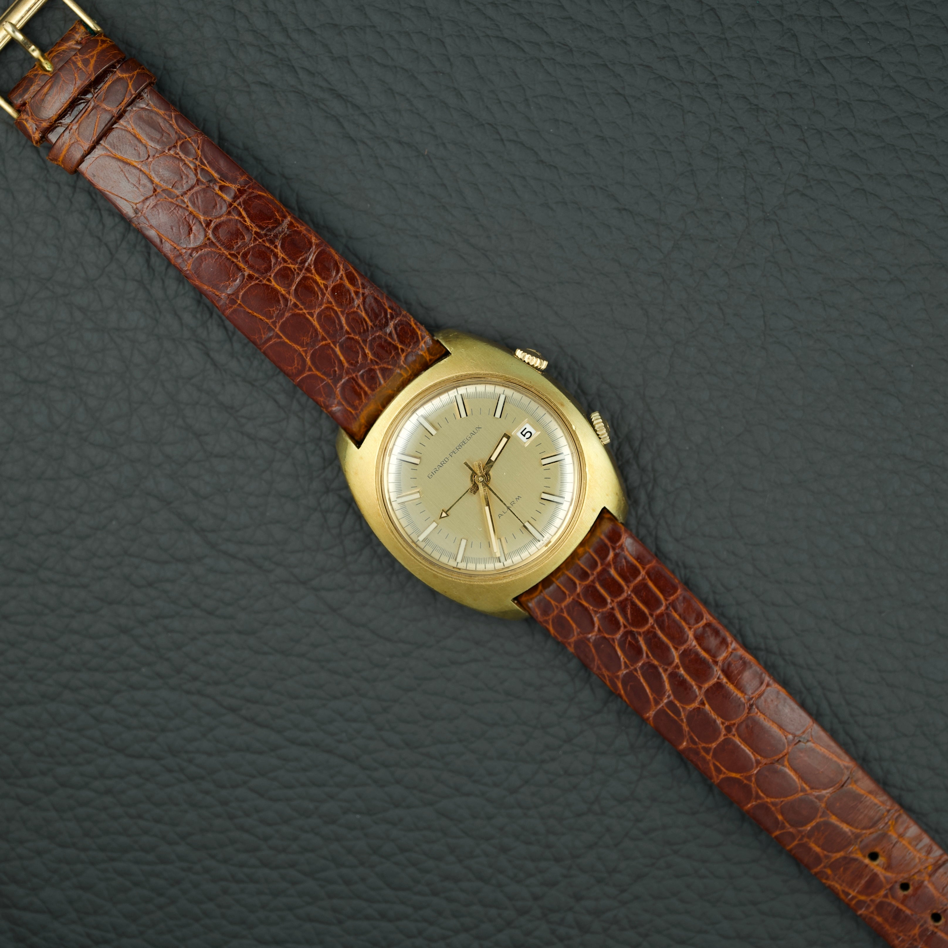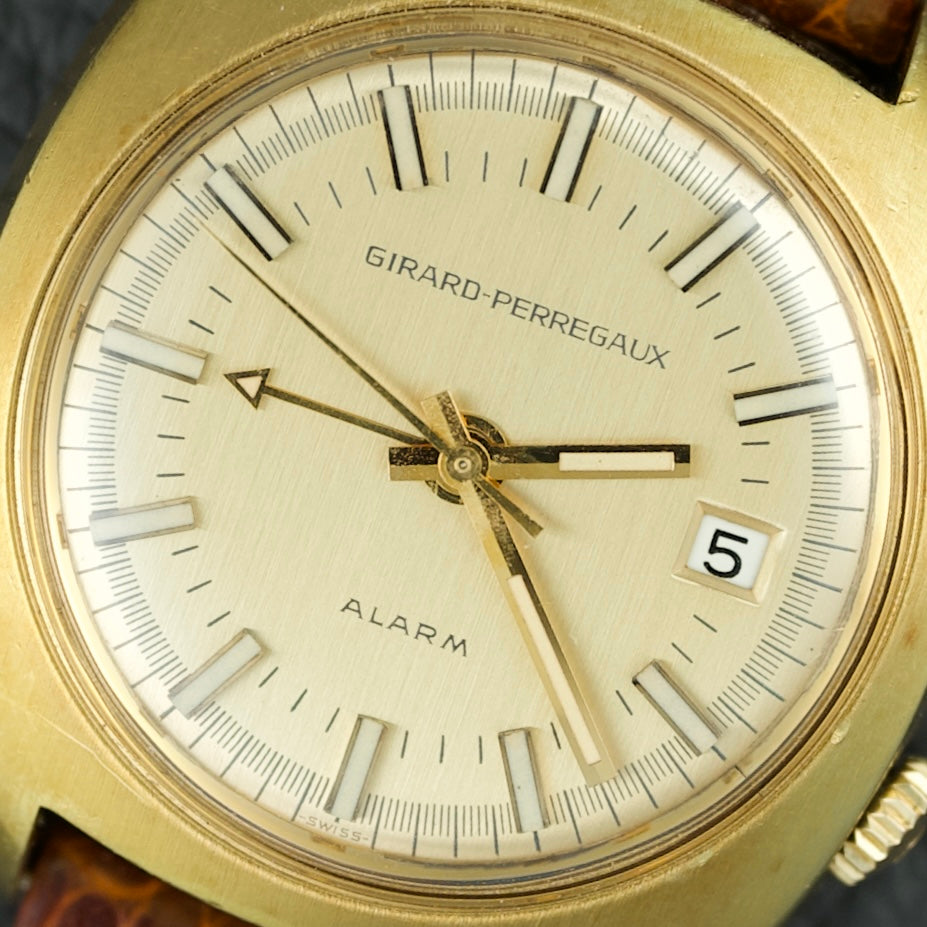 Très rare et captivante montre Girard-Perregaux Alarm réf.9490, produite en seulement 350 exemplaires entre 1972 et 1976.
