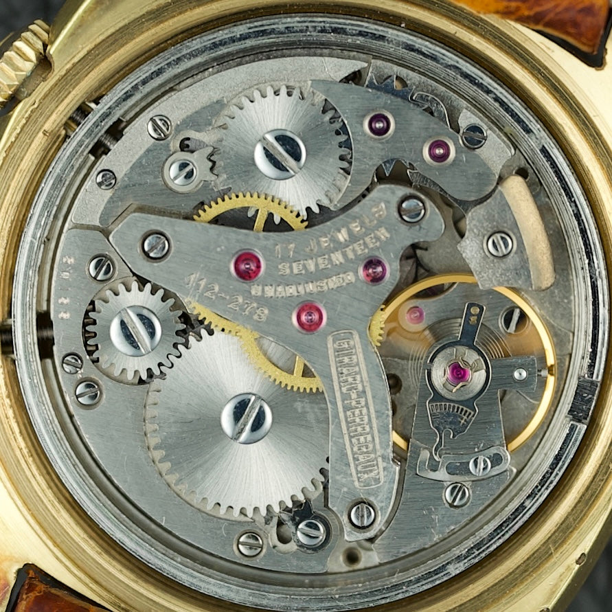 A l'intérieur se trouve le mouvement manuel Girard-Perregaux Calibre 112, basé sur le calibre A. Schild 1931. Il est équipé d’un mécanisme d'alarme activé par une couronne à 2 heures. Cette couronne sert à remonter, régler et activer l'alarme. L’alarme est activée en tirant la couronne et peut être arrêtée simplement en la repoussant.