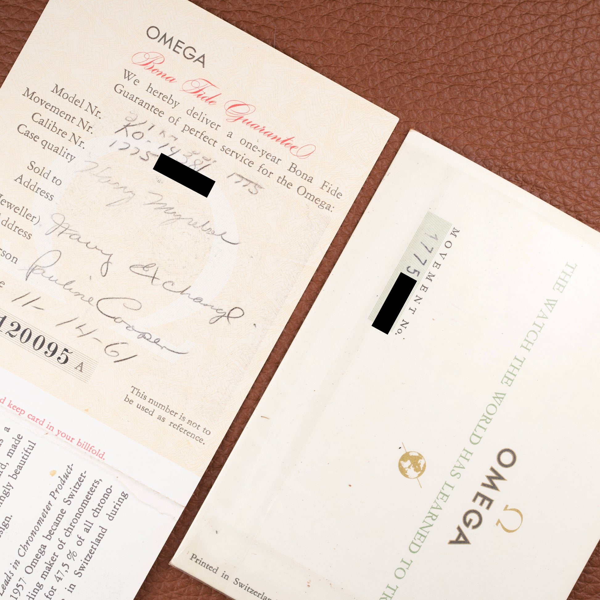 - Livret de garantie Omega d’origine