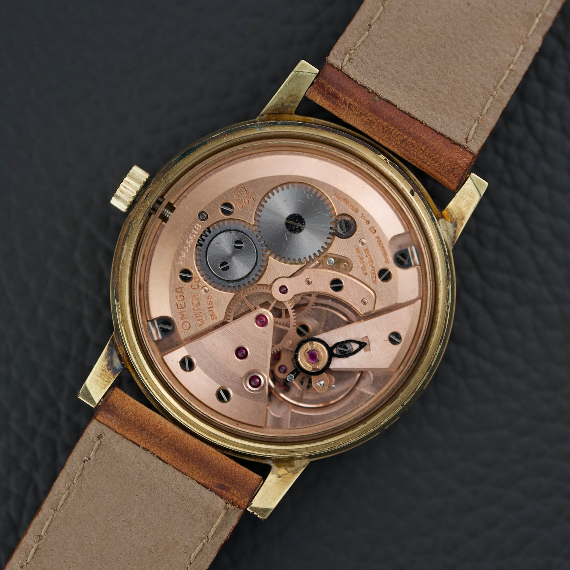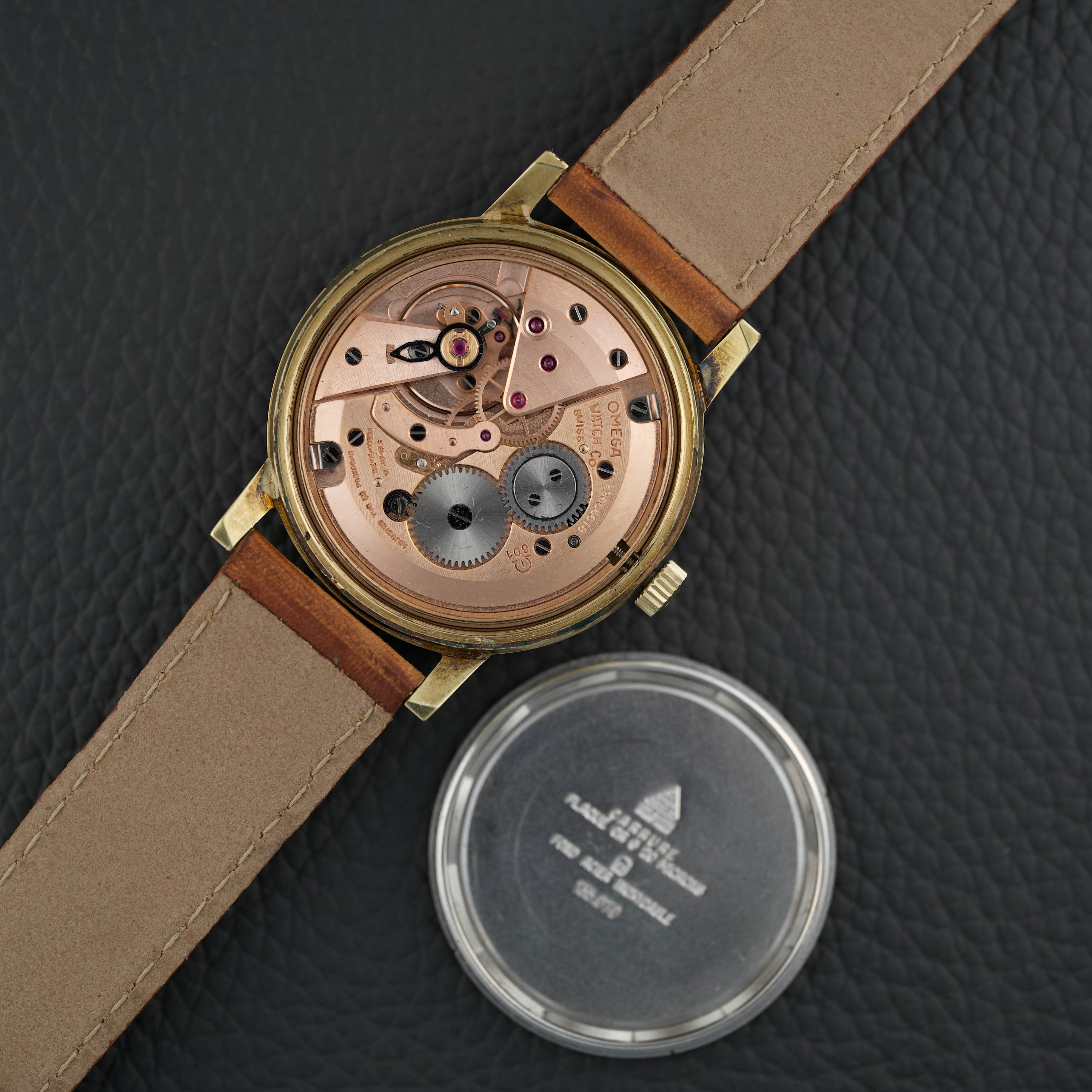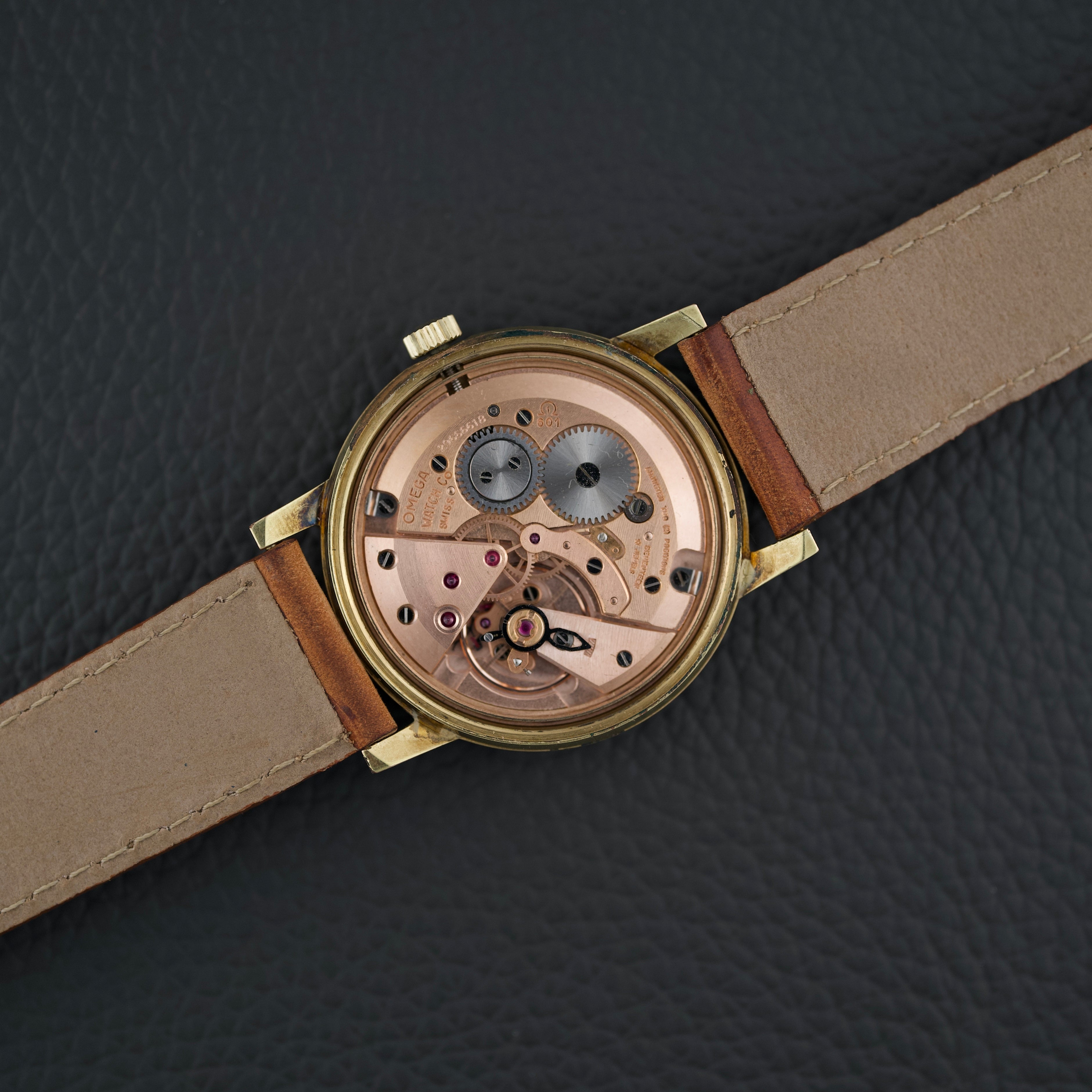 Animée par le calibre Omega 601, un mouvement à remontage manuel reconnu pour sa robustesse et sa précision, cette montre allie charme vintage et fiabilité mécanique. Avec son diamètre de 34,5 mm, elle se porte avec distinction et discrétion.