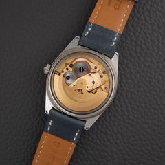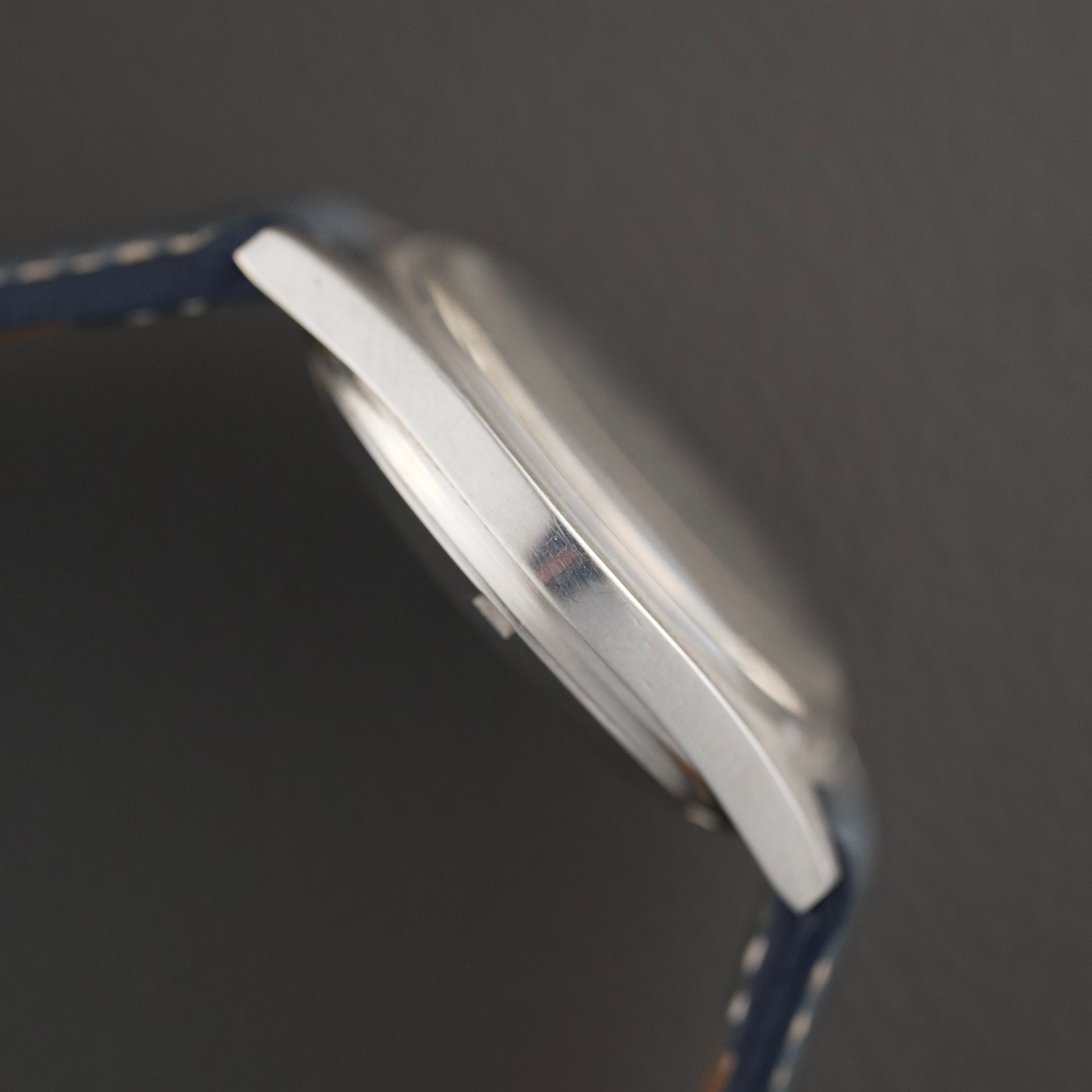 Cette référence 166.041 dispose d'un boîtier en acier inoxydable aux lignes nettes, un cadran argenté soleillé d’une grande sobriété, et des aiguilles bâtons parfaitement proportionnées. Animée par le calibre automatique Omega 565, elle offre une grande fluidité d’usage grâce à sa fonction de remontage automatique et sa date à changement rapide (tirer 2 fois sur la couronne).