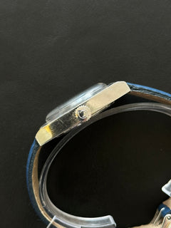 Le ton bleu de ce cadran et les aiguilles blanches forment un superbe combo qui ne laissera personne indifférent. Le tritium lume est tout présent et a très bien vieilli. La conception de cette montre avec son boîter carré lui permet d'encaisser les coups. Vous ne risquerez pas de plier l'une de ses cornes !