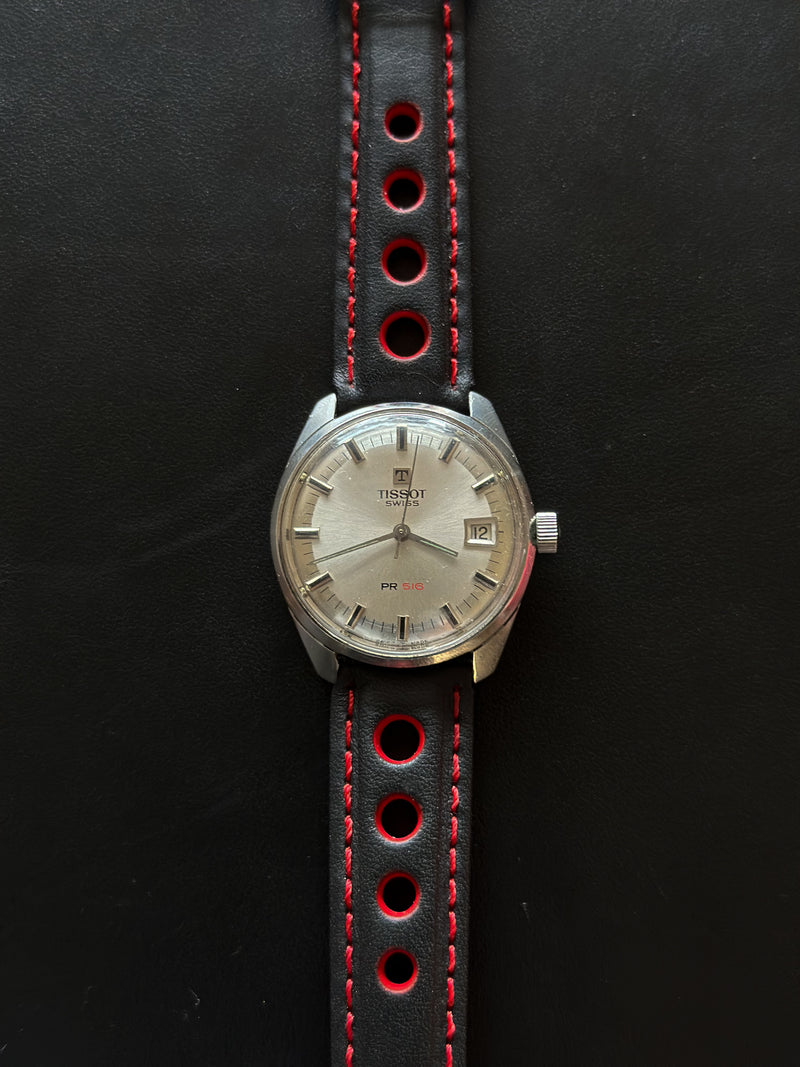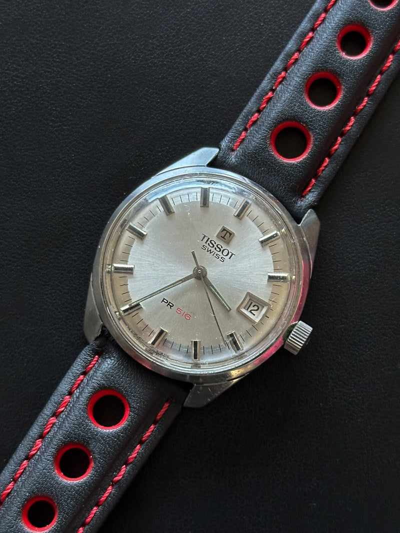 Superbe Tissot PR516, une montre emblématique qui nous ramène directement dans l’univers du sport automobile des années 60 et 70. La mention PR516, signifie tout simplement "Particulièrement Résistante".