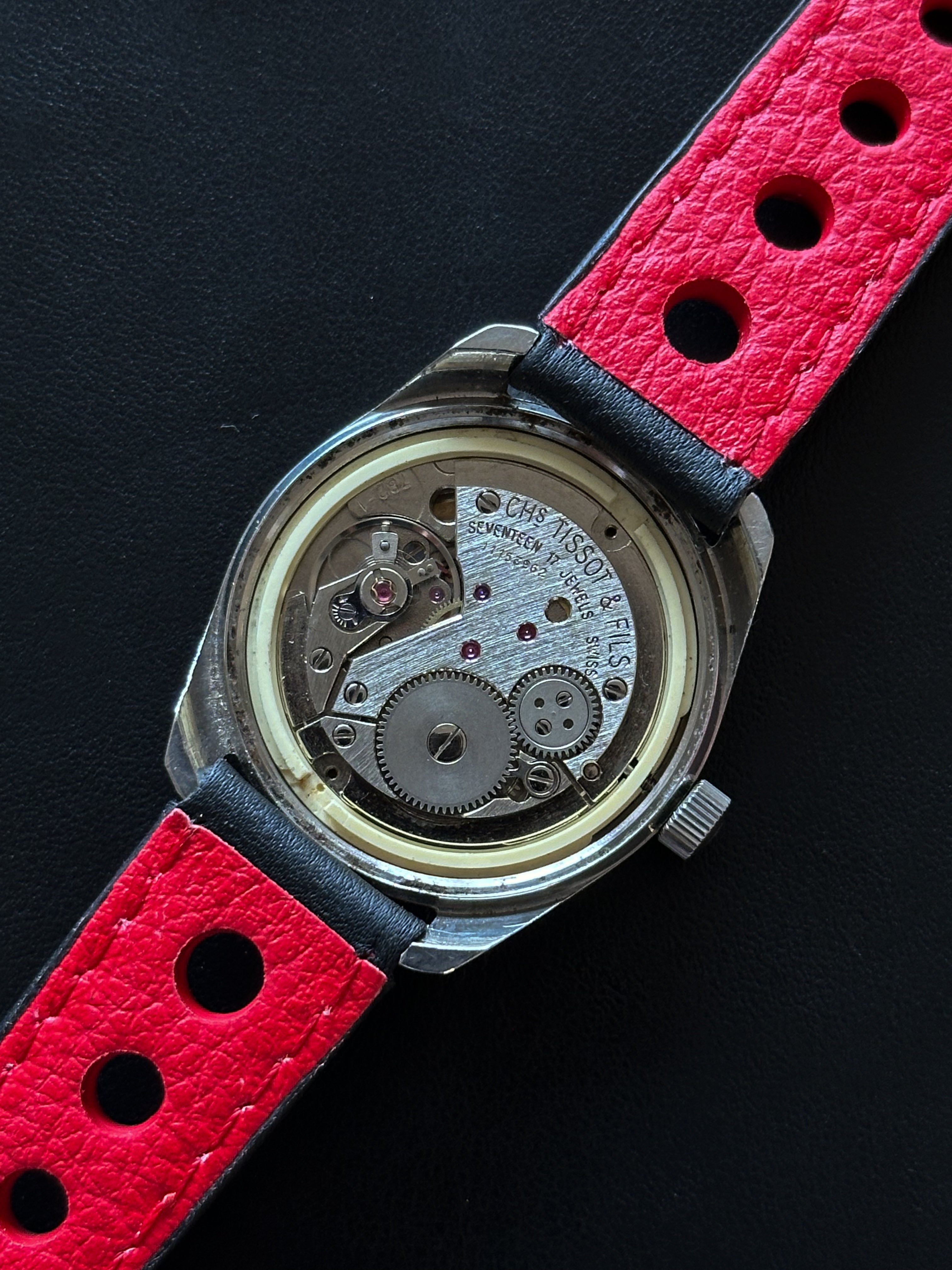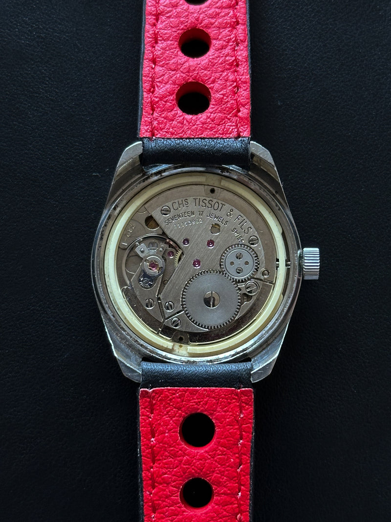 Cette Tissot est équipée du calibre 782-1, un mouvement à remontage manuel. Avec un diamètre de 33,5 mm, elle offre une présence élégante et sportive au poignet. Ce modèle a été introduit pour la première fois par Tissot en 1965 comme une montre de sport. Par la suite, pour des raisons commerciales, elle a été repositionnée pour se connecter davantage à l'univers des sports mécaniques.