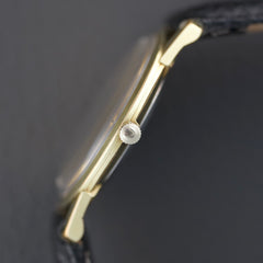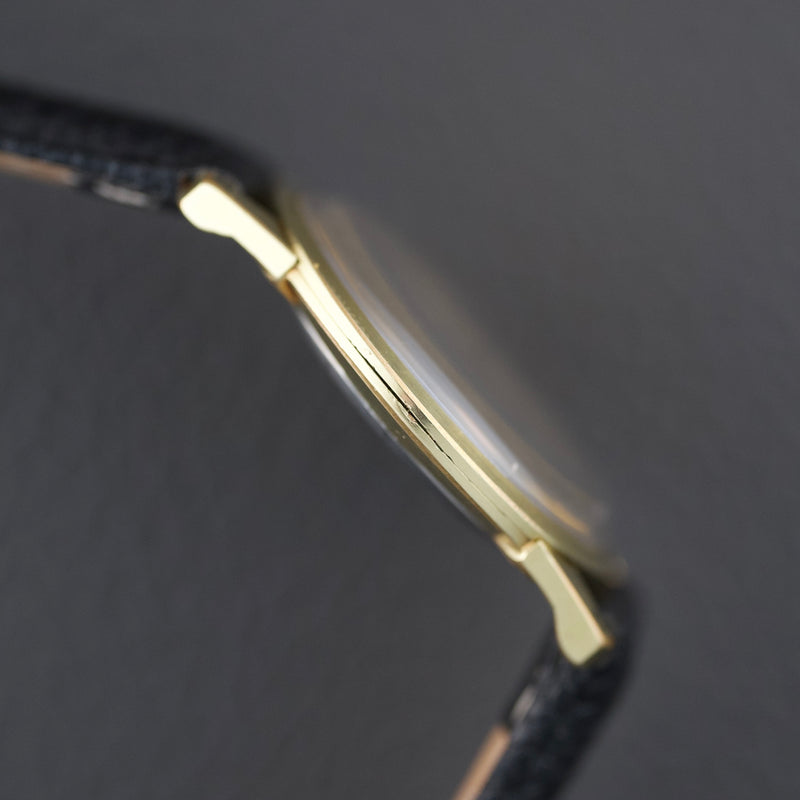 Cette Universal Genève Ultra-Plate référence 542101, produite dans les années 70, s’inscrit pleinement dans cet héritage. Avec seulement 4 mm d’épaisseur, elle offre une présence discrète mais raffinée, idéale pour celles et ceux qui privilégient la sobriété et la finesse. Son boîtier en acier plaqué or jaune lui apporte une touche chaleureuse sans jamais être ostentatoire.