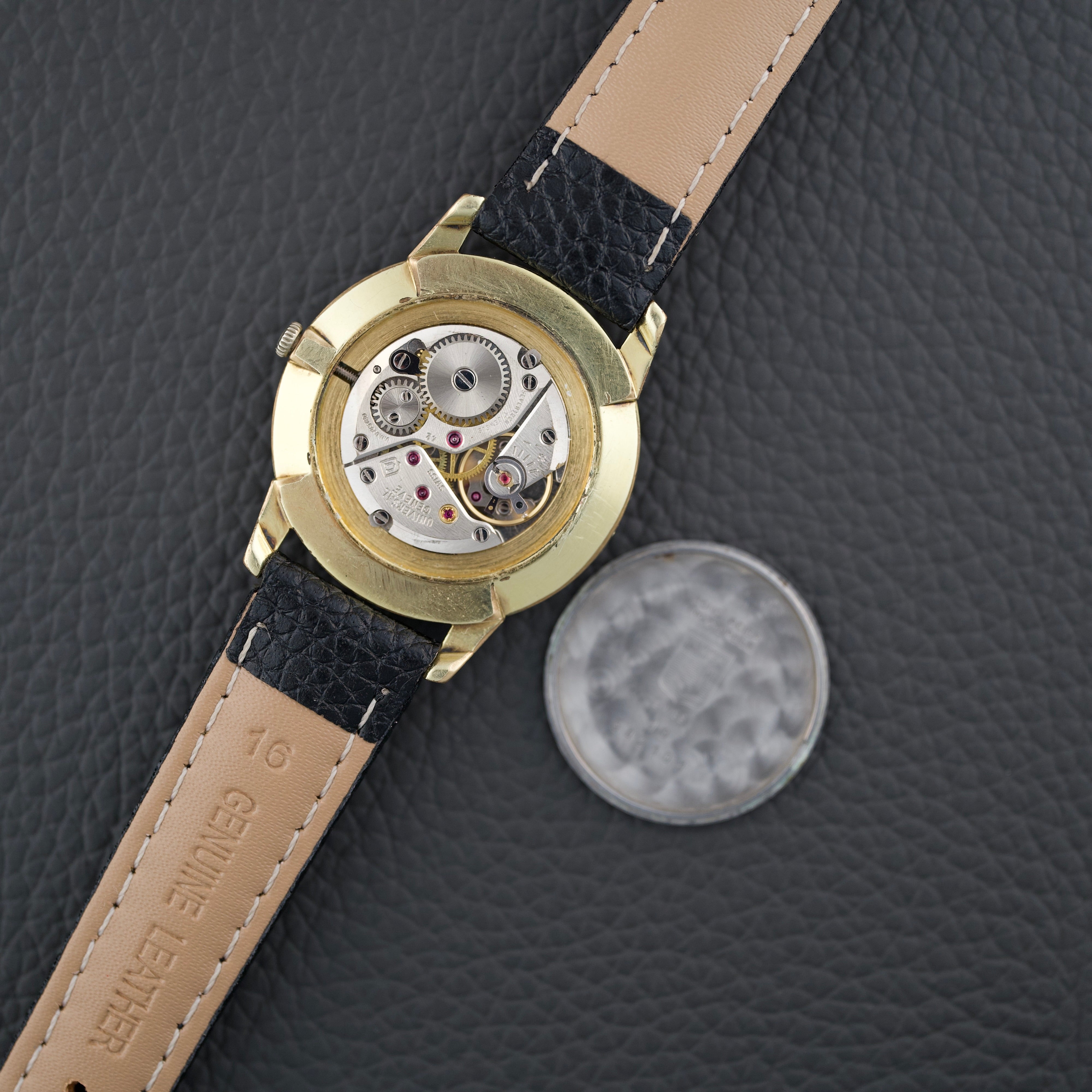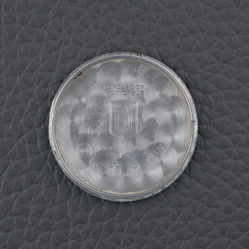 À l’intérieur, on retrouve le calibre Universal 42, un mouvement à remontage manuel extra-plat réputé pour sa fiabilité et sa construction intelligente. Fraîchement révisé, il assure une marche optimale et une prise en main agréable au quotidien. Cette montre a été révisé en juin 2025.