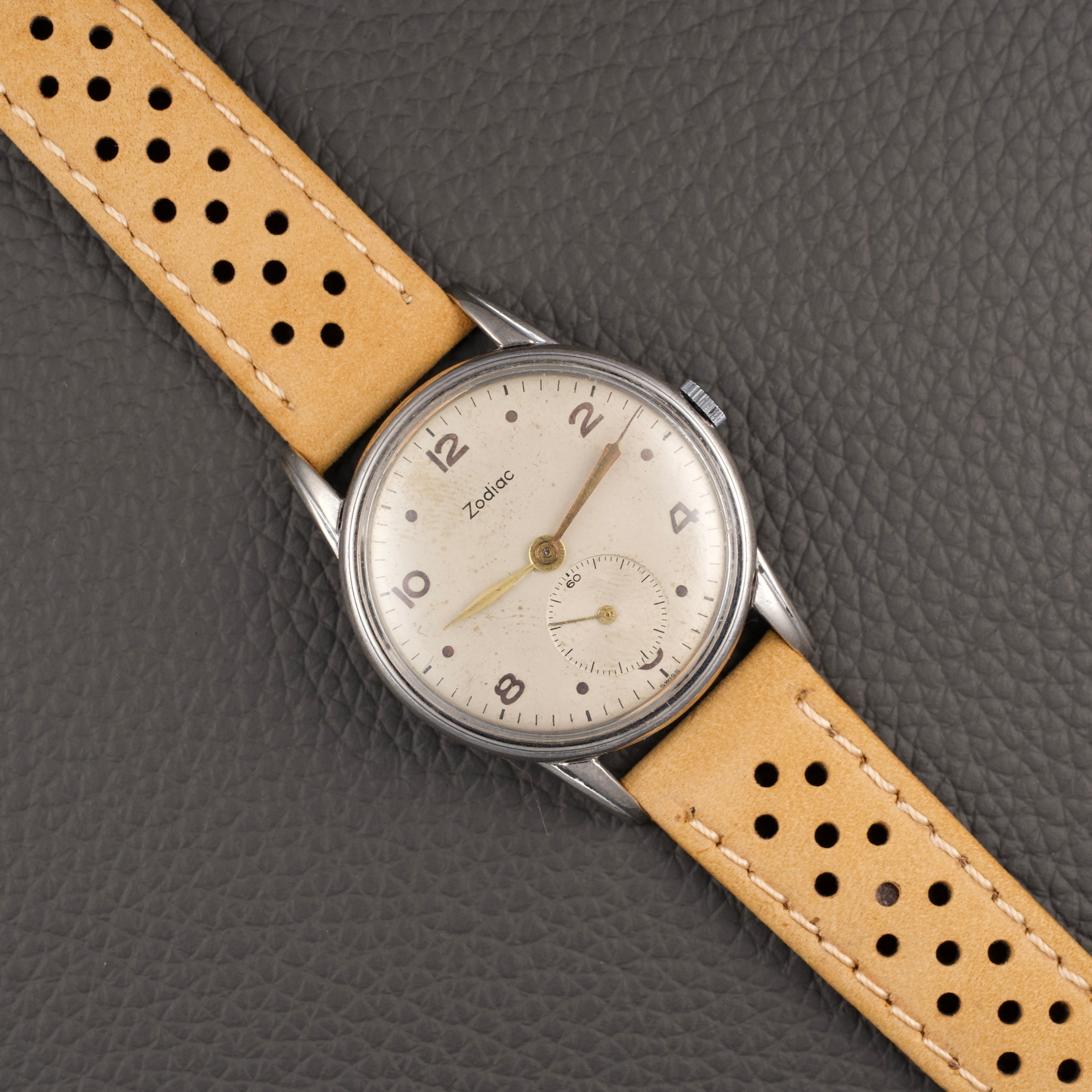 La Zodiac référence 956 est une montre mécanique typique des années 1960, période durant laquelle la marque suisse proposait des garde-temps robustes, élégants et accessibles, tout en conservant une véritable identité horlogère.